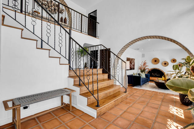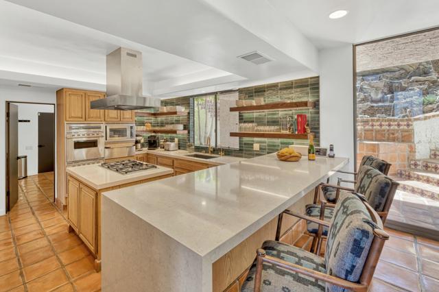 PRICED REDUCED 101,000Elevated desert living starts here--Ridge House is a secluded Mesa retreat designed for entertaining, relaxing, and soaking in unforgettable views. Perched in the tranquil hills of Palm Springs, this beautifully renovated ~4,000 sq ft estate spans ~0.62 acres and blends timeless California Spanish-inspired architecture with modern comfort, panoramic valley vistas, and lush tropical-style landscaping. Highlights include 3 bedrooms + 4.5 baths, walk-in closets, formal living and dining, a billiards/game room with bar, saltwater pool & spa, expansive view balconies, a 5-car garage, workshop, fitness center, and solar with car connection.Custom iron doors open to a grand foyer framed by Spanish-tiled archways, leading to a formal living room with a gas fireplace and an elegant dining space with designer lighting and climatized wine storage--both capturing breathtaking views. At the center of the home, the spacious kitchen is built for hosting and everyday ease, featuring a double-size Sub-Zero refrigerator/freezer, dual ovens, warming drawer, gas cooktop, and an island hood with exterior venting, flowing seamlessly into an adjacent informal living room. Outdoor cooking is covered with a kitchen-side grill plus a mountain-top grill for sunset gatherings above it all.Upstairs, three luxurious bedrooms--each with direct balcony access--offer peaceful, view-filled escapes. The primary suite is a true sanctuary with commanding valley views, a gas fireplace, walk-in closet, and a spa-inspired bath with dual sinks, a spa shower, and a jetted tub.furnishings negotiable outside of escrow