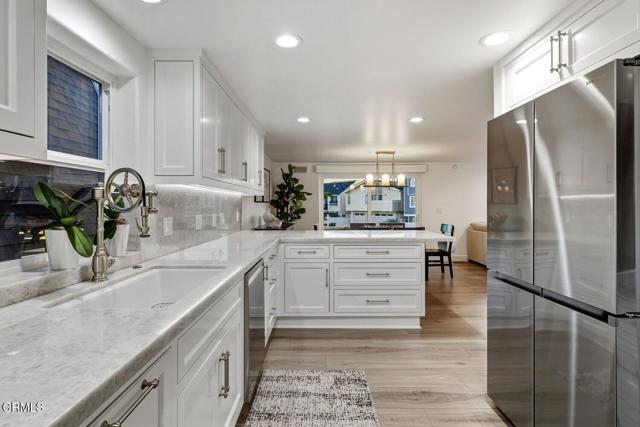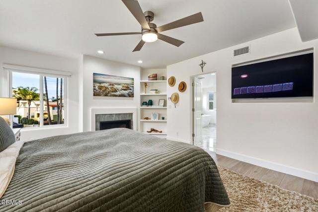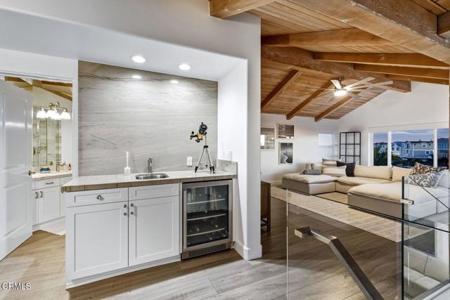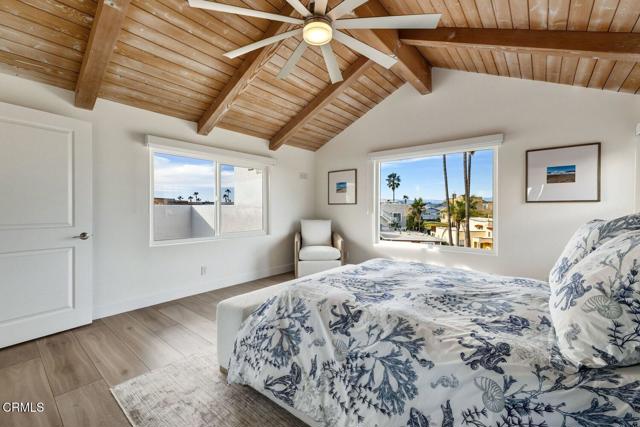 Tucked just steps from the shore, this modern beach residence offers privacy, natural light, and effortless indoor-outdoor living. Clean-lined coastal architecture opens to a bright, open interior, complemented by multiple outdoor spaces, including a private rooftop deck with unobstructed views of the Anacapa Islands.Designed with both comfort and function in mind, the three-story home features 4 bedrooms and 3.5 bathrooms across approximately 2,826 square feet. Recent upgrades emphasize quality and thoughtful design, including updated kitchen cabinetry and appliances, marble-look quartz countertops, spa-like bathrooms with a steam shower in the primary suite, custom stainless steel handrails, interior glass railings, and automated window shades.Outdoor living is a defining feature, with three decks - including an epoxy-finished rooftop deck - enhanced exterior privacy hedging, and a private backyard spa. The low-maintenance exterior and secluded layout create a peaceful retreat from street activity while remaining close to the shore.Additional features include a built-in vacuum system, marble fireplaces, multiple televisions throughout the home (including outdoor areas), an epoxy-finished garage floor, frosted glass garage door, private driveway, and a 2-car garage.Ideal as a full-time residence or lock-and-leave coastal escape, this home delivers privacy, comfort, and refined coastal living in one of the area's most sought-after beach neighborhoods.