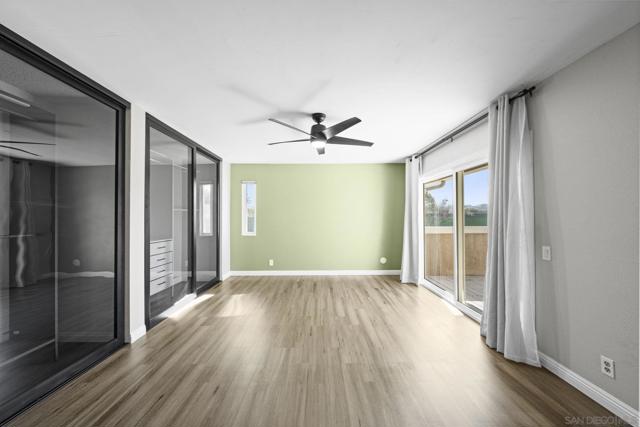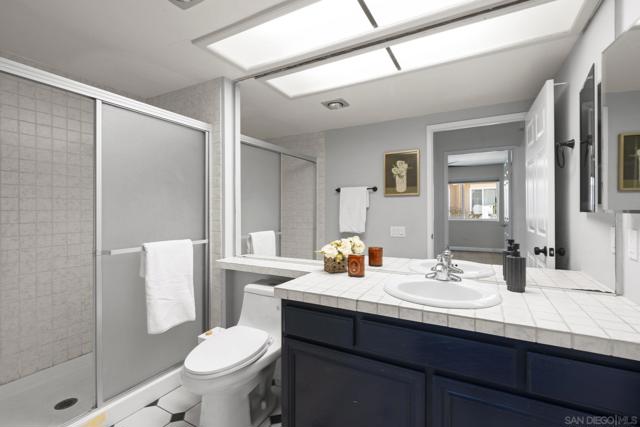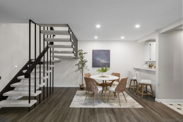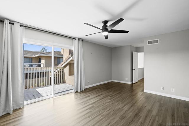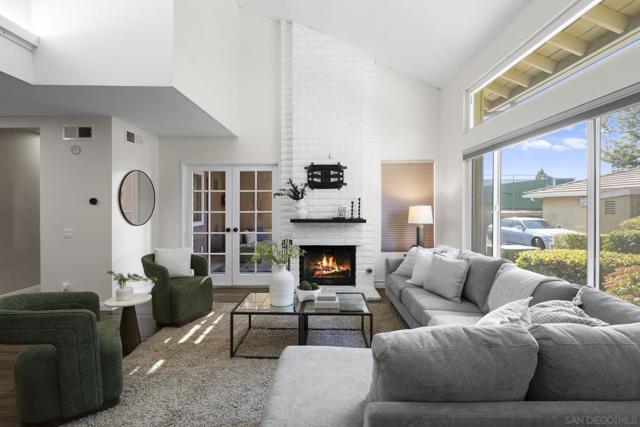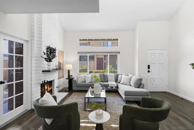 Welcome to the most desirable floor plan in the highly sought-after Playmor community of Rancho Bernardo. This townhome features a flexible layout with spacious bedrooms, including a bedroom and full bathroom downstairs, ideal for guests, multigenerational living, or a home office. Vaulted ceilings and dual-pane windows create a bright and airy feel, while the private patio offers great space for relaxing or entertaining. Additional upgrades include LVP flooring, ceiling fans in every bedroom, Smart lock + Nest thermostat with central heat and AC, newer water heater (2025), and a dedicated laundry area. HOA INCLUDES water, high-speed internet, cable TV, trash, and sewer along with resort-style amenities including two pools, tennis courts, and a playground. The updated kitchen features stainless steel appliances, a large single-basin sink, recessed lighting, and a built-in wine shelf. Upstairs, the primary suite offers a custom closet and private balcony with sunset views. Secondary bedrooms include walk-in closets for added storage.The home includes a detached garage, one additional assigned parking space, and convenient guest parking. Conveniently located near the I-15, the Country Club of Rancho Bernardo, and within the award-winning Poway Unified School District, this home offers exceptional comfort and convenience. FHA & VA Approved!