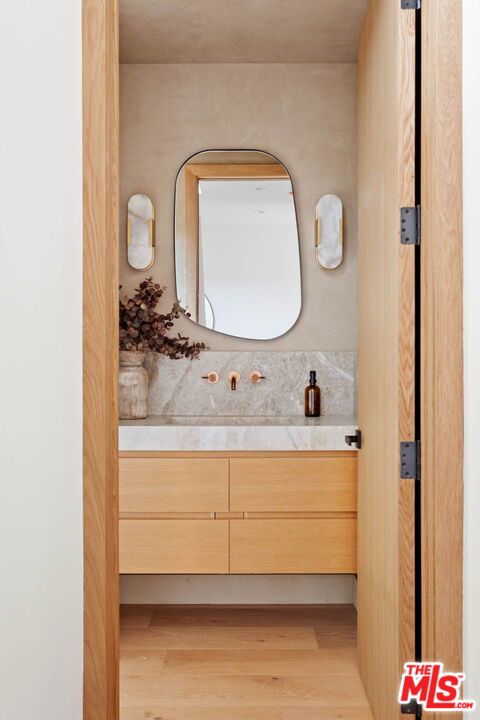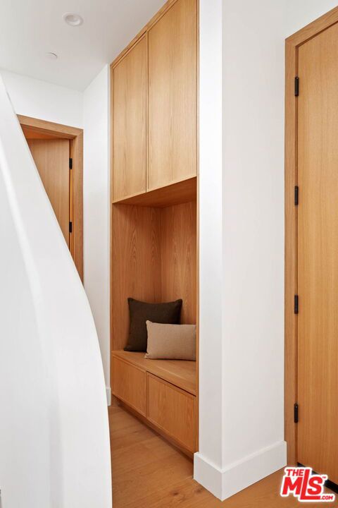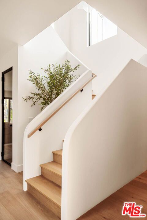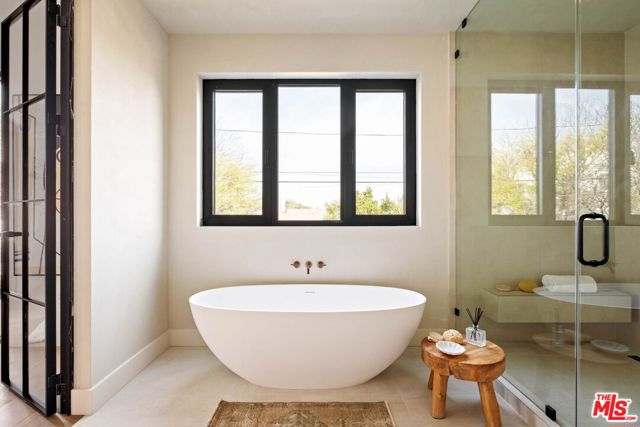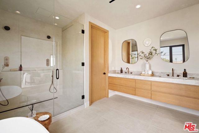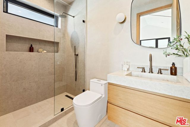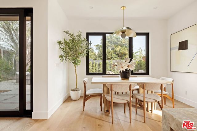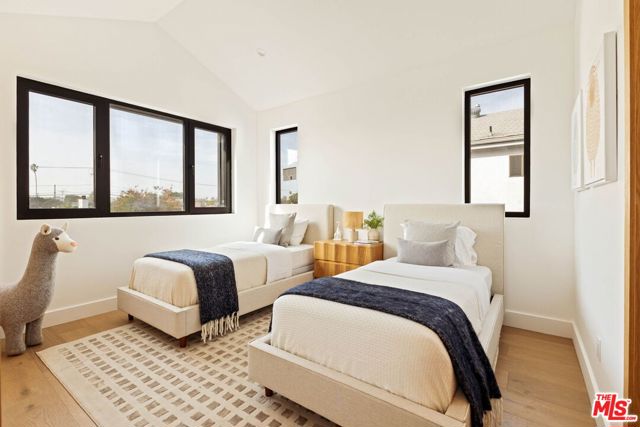 On a quiet street in coveted Del Rey, adjacent to Mar Vista, this newly built, move-in ready Japandi-inspired home by Jacobson Builders Group effortlessly blends elevated design with modern functionality. Offering 4 bedrooms, an office/flex space, and 4.5 bathrooms, this custom home with luxury finishes is crafted for both quiet daily living and sophisticated entertaining. The main floor features high ceilings, a sleek direct-vent fireplace, and expansive sliding doors that create seamless indoor-outdoor flow to the backyard with turf area. Flooded in natural light, the chef's kitchen features Thermador appliances, a large walk-in pantry, Taj Mahal stone countertops, custom oak cabinetry, and designer lighting, anchoring the open living and dining areas. Rounding out the downstairs is a large bedroom with ensuite bathroom as well as a flex room that can serve as a bedroom, office, or secondary living room with beverage fridge, vanity bar, and French doors. Upstairs, the primary suite with vaulted ceilings provides a private balcony, spa-inspired bathroom with freestanding tub, dual showers, custom vanities, and a spacious walk-in closet. Two additional ensuite bedrooms feature custom finishes and refined bathroom details throughout. Additional highlights include triple-pane custom aluminum windows and sliders, integrated speaker system, dual HVAC, wine room, large laundry room with custom cabinetry, wired security system, and a two-car direct-access garage with EV-ready plug-in. The fully gated exterior features drought-resistant landscaping and a blend of cement and cedar siding. Primely located in one of the most sought-after enclaves on the Westside of Los Angeles with central proximity to the restaurants, shopping, and entertainment in Marina del Rey, Venice, and Santa Monica, this turnkey home is not to be missed.