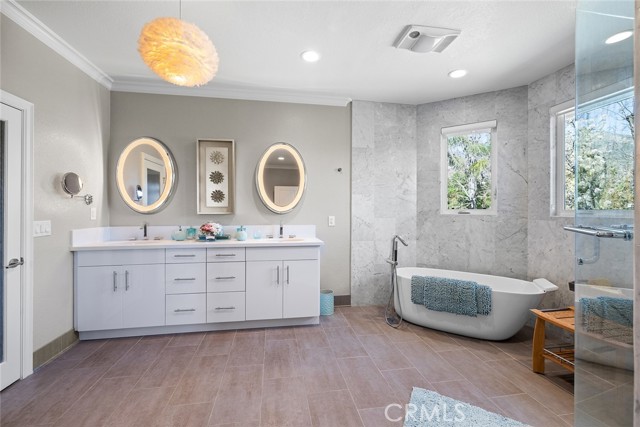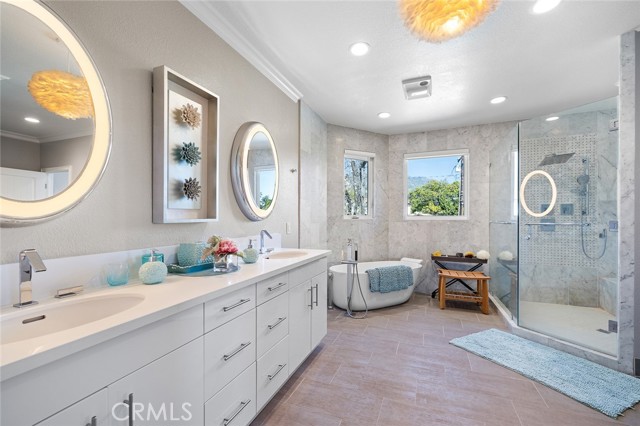 Welcome to your own palatial retreat at 1328 Oaklawn Rd, nestled in the prestigious Santa Anita Oaks Estate area of beautiful Arcadia. This two-story English Tudor estate exemplifies timeless elegance and exceptional craftsmanship, offering spectacular views of the San Gabriel mountains. You will be welcomed at an impressive entry way, adorned with a palatial chandelier and winding staircase. This home has a thoughtfully designed floorplan which features five en-suite bedrooms ideal for a multigenerational household. The home has undergone major renovations totaling over $700,000, ensuring both luxury and modern comfort throughout. The living spaces include a large living room with a fireplace and high ceiling, a formal dining room with a bay window overlooking the front yard and also a view of the backyard enhanced by double wide sliding glass doors. There is an oversized family room with a fireplace, backyard views, and high ceiling. The gourmet kitchen is equipped with a center island, granite counters, refinished solid wood cabinets, and a Subzero refrigerator. On the main level, you'll find a classy private office with stately built-in bookcases, two additional en-suite bedrooms, a laundry room, and an elegant powder room. Upstairs, the massive master suite offers a cozy retreat area, fireplace, and a bathroom that serves as a private sanctuary. The master suite bathroom features a separate toilet for enhanced privacy and a spiral staircase that leads directly to the kitchen area. Two additional spacious en-suites are also located on the upper level, each with its own walk-in closet. One of which boasts a canopy-covered balcony with spectacular views of the backyard landscape and mountains in the background. The backyard is a true oasis, featuring gorgeous mountain views, a sparkling pool and spa, expansive grassy area, and a fully owned solar panel patio for affordable green energy and entertainment. The backyard is flanked by various types of fruit trees, adding both beauty and bounty to this exceptional property. Seller is also offering to sell you the high-end furniture which was meticulously selected by the designer. Don't miss the opportunity to make this extraordinary estate your forever home.