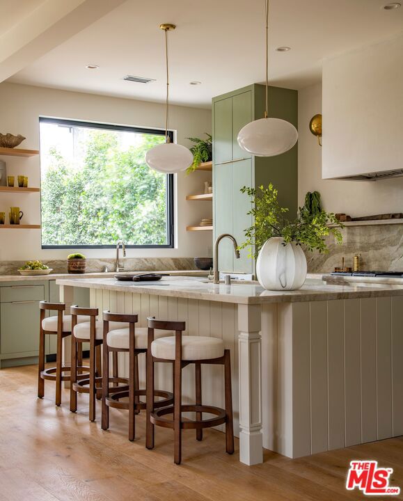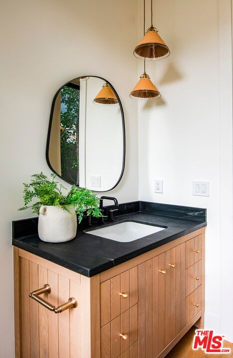 This newly completed, designer-done Venice retreat is private, secure, and centrally located with a substantial yard for entertaining. The home is set back from the street on a generous 6,061 SF lot, spanning 3,315 SF with 4 bedrooms and 4.5 bathrooms. Custom-built by Bespoke Homes, it boasts an organic, transitional interior finish style that encompasses Venice-inspired living. A private gated courtyard with blooming citrus trees and a custom water feature welcomes you inside. The light-filled interior is finished with medium oak wood floors and storage throughout. The main level is anchored by a well-scaled great room with a limestone-surround fireplace, designer-done chef's kitchen, and large sliding glass doors opening to the private backyard. The kitchen features a generous island, custom cabinetry, dual dishwashers and sinks, Taj Mahal stone countertops, Thermador appliances, hidden walk-in pantry, and a large pass-through awning window opening directly to the outdoor bar. A dedicated dining area sits just off the kitchen and living space, alongside a powder room, mudroom-style drop zone, and a main-level en-suite bedroom providing flexibility for guests or a home office. Upstairs, natural light pours in through skylights leading to three bedrooms, all en-suite with vaulted ceilings and walk-in closets. The primary suite features its own custom fireplace, two massive walk-in closets, and a spa-inspired bath with dual vanities, Taj Mahal countertops, soaking tub, and oversized shower. A separate laundry room completes the upper level. Outside, enjoy a full outdoor kitchen, large trellis-covered patio, fire-pit, and expansive yard space with curated landscaping. Secluded from the street with ample parking and a secure setback presence, this exquisite new construction offers a rare sense of privacy just moments from Abbot Kinney, the beach, and the best of Venice living.