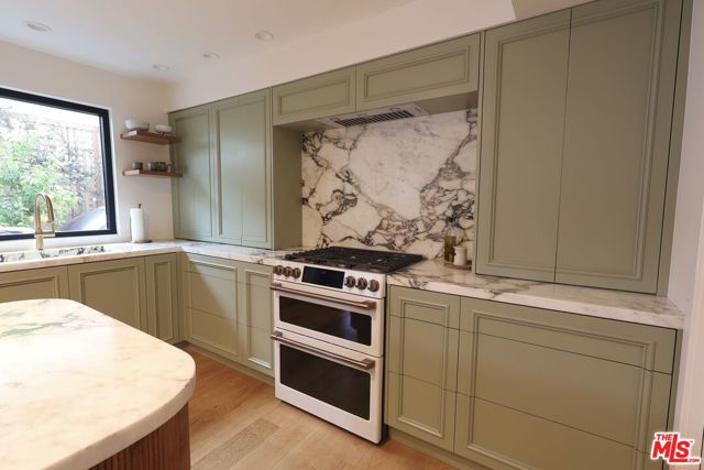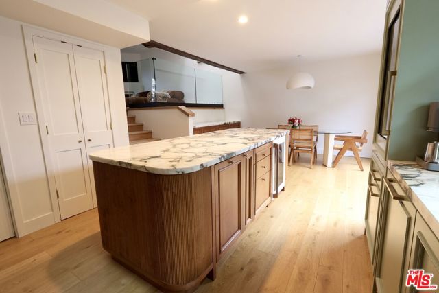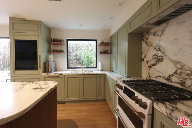 Welcome to elevated Santa Monica living in this 2,084 sq. ft. architectural townhome offering 3 bedrooms and 3.5 bathrooms, plus a dedicated office and private gym. Thoughtfully gut-renovated in 2025 with designer finishes, including lighting fixtures from Kelly Wearstler and Soho Home, the home showcases a refined palette of natural stone, including calacatta viola marble, travertine, and black quartzite, natural wood, organic materials, and health-conscious Portola paints throughout. At the heart of the residence is a dramatic 30-foot skylit atrium, flooding the interiors with natural light all day and creating an exceptional sense of volume and openness. Designed for effortless everyday living and elevated entertaining, the chef's kitchen is the true heart of the home, featuring integrated Monogram appliances, a dual-zone wine cooler, and custom cabinetry with exceptional storage throughout. The kitchen opens directly into a beautifully landscaped patio with gas and water hookups, creating an effortless indoor-outdoor flow, ideal for al fresco entertaining. The spacious living room is anchored by a custom plaster gas fireplace and large picture window. The home features an outdoor top-level deck with peek-a-boo ocean views, a dedicated laundry room with sink, a new HVAC (2025), and a private two-car direct-access garage with EV charger. The current HOA dues include earthquake insurance, adding peace of mind to this exceptional offering. Positioned just off of 14th and Montana, enjoy prime access to Santa Monica's best coffee, dining, fitness, retail, and grocery. A rare blend of architectural drama, thoughtful design, luxury finishes, and prime location.