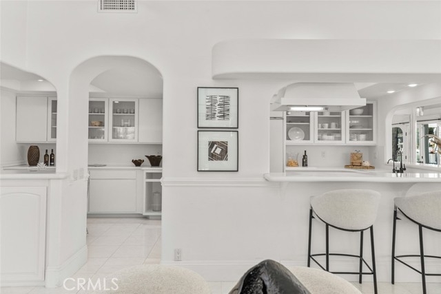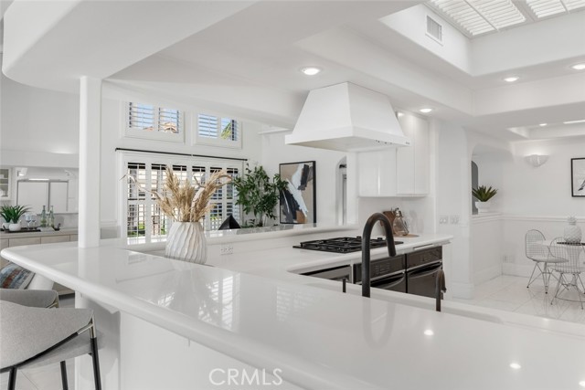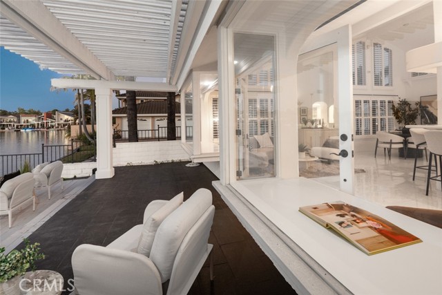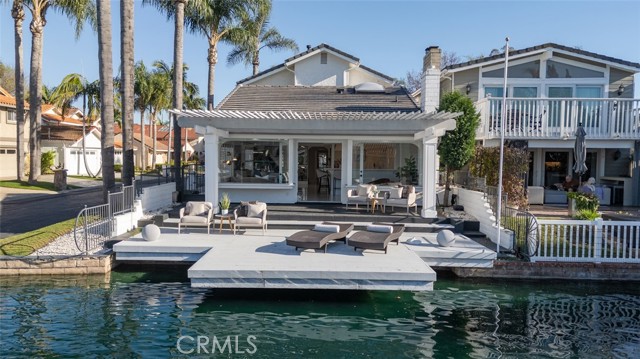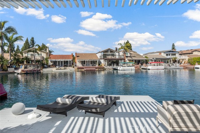 This residence reads less like a conventional home and more like a study in proportion, light, and reflection. Positioned on a rare inside corner lot, the property opens outward to a broad main channel panorama where the water widens and the horizon lingers. From nearly every vantage point, the lake becomes part of the composition, not simply a backdrop but a constantly shifting material that animates the house throughout the day. The exterior presents a restrained modernist language, crisp planes of white softened by shadow lines from mature palms and the geometry of the dock beyond. As the home wraps the corner, it reveals itself gradually, a sequence rather than a façade. The waterline deck extends like a continuation of the living space, dissolving the boundary between structure and shoreline. Inside, the plan unfolds with an almost gallery-like clarity. Surfaces remain intentionally calm, allowing volume and perspective to take precedence. Wide openings frame long water views that shift as you move, producing a subtle sense of procession through the home. The living spaces orient toward the channel, while softer, more intimate moments appear along the periphery, reading corners, curved seating arrangements, and layered sightlines that create both openness and refuge. The kitchen sits as a sculptural center rather than a separate room, its soft forms and pale palette reflecting daylight deeper into the interior. Two primary suites, one upstairs and one downstairs, allow the home to function across different rhythms of living. The lower suite maintains immediate connection to the water and outdoor terrace, while the second primary becomes a retreat elevated above the shoreline with a longer perspective across the channel. Outdoor living is treated as an extension of architecture rather than an addition to it. The covered terrace acts as an intermediary space, shaded yet open, where breezes move through and the sounds of water remain constant. The dock sits within the protected interior corner of the lot, reinforcing both privacy and the expansive feel of the main channel view. Boats pass at a distance, never dominating the experience, only punctuating it. Here, architecture becomes a lens through which the setting is continuously rediscovered, morning glassy and still, afternoon bright and active, evening quiet and reflective, each moment framed deliberately, each perspective considered.