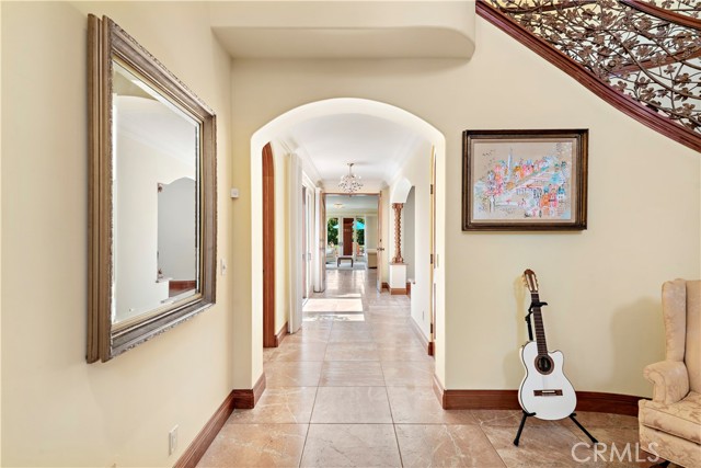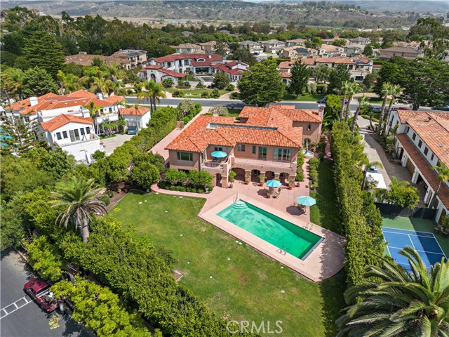 4060 Calle Isabella is a timeless Spanish Revival estate blending classic architecture with refined coastal living located behind the prestigious Cotton Point Estates gates. The exclusive double-gated enclave of Cotton Point at the southernmost tip of San Clemente is home to the historic Casa Pacifica. Residents enjoy a private beach trail with sweeping ocean vistas over world-renowned surf breaks and exclusive beach access through neighboring Cypress Shores. The quiet cul de sac street is home to only 16 estates to ensure peace and privacy. Step inside to admire hand-hewn beams, custom wrought iron, arched doorways, and artisan finishes create warmth and character throughout. Stucco walls, soft Mediterranean tones, and a red clay tile roof frame charming courtyards, a tranquil fountain, covered loggia, and lush landscaped grounds. The flexible multi-generational floor plan offers formal living and dining rooms with fireplace, two main-level bedrooms with two full baths, powder room, casual living space, and an expansive kitchen designed for gathering and entertaining. Upstairs features a bonus room, private office, laundry, two secondary bedrooms connected by a Hollywood bath, and a serene primary suite with ocean-facing deck capturing sea breezes and peek ocean views overlooking the impressive 18’ x 45’ pool and yard.