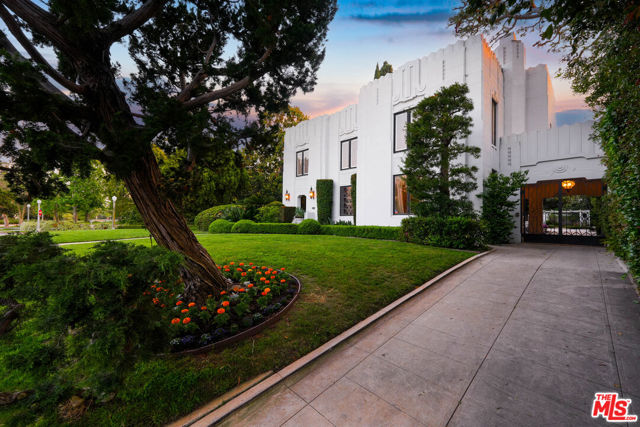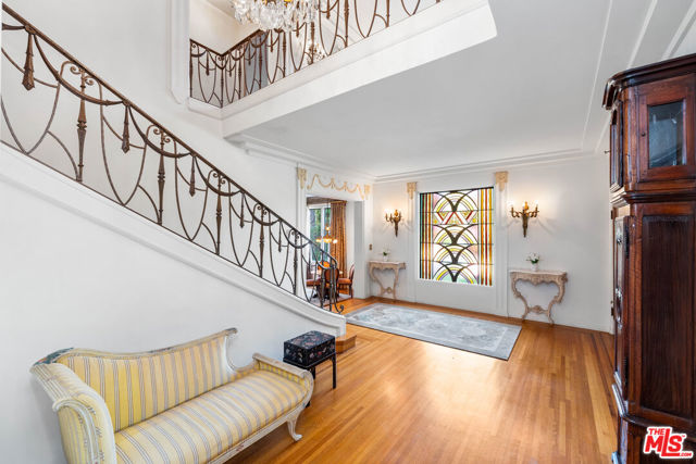 This magnificent Art Deco home is located in Hancock Park, one of the most exquisite neighborhoods in Los Angeles. It stands as a masterpiece of architectural design, capturing the elegance and opulence of the 1920's and 1930's. Architecturally known as the "Smith House", the exterior showcases a symmetrical facade with clean lines, bold geometric shapes, and a striking combination of materials such as rich stucco and stained glass. As you step inside, you are greeted by a grand foyer adorned with luxurious oak flooring and a sweeping staircase that exudes sophistication. The interior of the house features artistic ceilings, large windows, and an abundance of natural light, creating a bright and airy atmosphere. The living room is a true reflection of the Art Deco style, with its sleek and streamlined furniture, geometric patterns, and rich color palette. The fireplace is a focal point, adorned with a decorative white marble mantel. Moving into the dining room, you will find an exquisite space for entertaining, complete with a dazzling chandelier, polished wood furniture, and intricate detailing on the walls. The kitchen is a custom-built St. Charles design. It combines vintage amenities with an Art Deco flair featuring chrome accents and highly purposeful, sleek cabinetry. The bedrooms in this Art Deco house are equally stunning, with plush carpets, luxurious fabrics, and stunning views of the surrounding landscape. The bathrooms are a blend of functionality and elegance. They feature vintage fixtures, mosaic tiles, and artfully designed vanities. In addition, you also have a stunning entertainment room with a drop-down movie screen and a 17' full bar that is all stainless steel and is set for two bartenders. Outside, the house is surrounded by a meticulously landscaped garden and a charming outdoor seating area. The Art Deco influence extends to the exterior with ornate wrought iron accents, decorative motifs, and bold color choices. This historical Art Deco house is a true architectural gem, combining timeless elegance with modern comforts. It is a testament to the rich history and artistic vision of the Art Deco movement. It provides a unique and enchanting living experience with its iconic style and exclusivity. The house has been featured in a number of films and television shoots. For the first time in over 50 years, this spectacular piece of Art Deco is available for a lucky new owner!