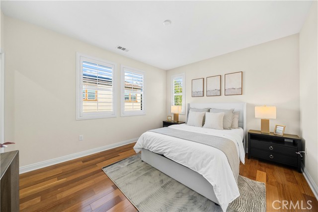Situated on a desirable corner lot in the heart of Irvine’s Pavilion Park, 117 Laceflower offers a thoughtfully designed floor plan that prioritizes both privacy and accessibility. A formal entry creates an inviting first impression, leading into an open-concept living area that serves as the heart of the home. This residence is uniquely suited for multi-generational living or a long-term "forever home" setup, featuring a rare downstairs layout with two full bedrooms and two bathrooms on the main level, including the spacious primary suite.