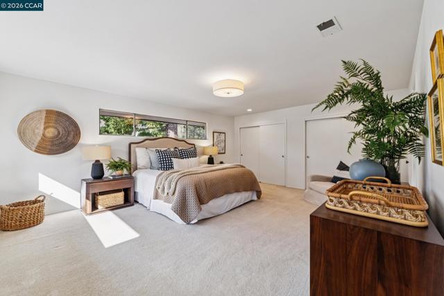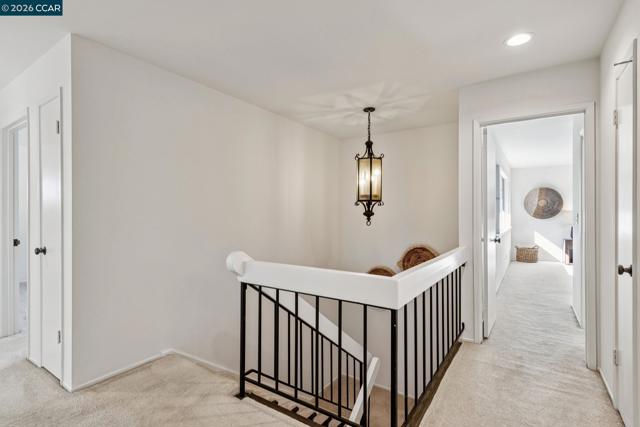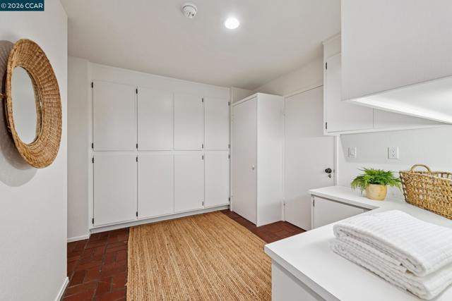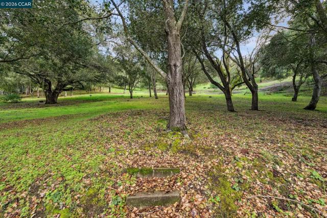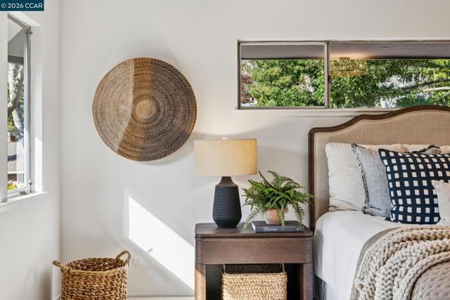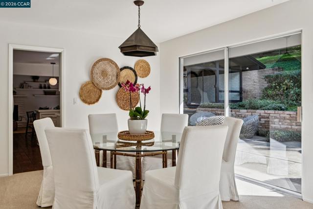 Located on a wide, tree-lined street in the coveted Orinda Downs neighborhood, this 5-bedroom, 3.5-bath home blends privacy, flexibility, and room to live & work comfortably. The main level is designed for easy living and includes a sun-filled living room w soaring ceilings, brick fireplace, and expansive walls of glass with views of the pool, patio, and oak-covered hillside. An adjacent formal dining room flows seamlessly for gatherings both big and small. At the heart of the home, the kitchen and family room create a relaxed, social hub featuring fireplace, built-in bar, & sliding doors that open directly to the backyard, pool, & cabana—perfect for indoor-outdoor entertaining. A large laundry room offers abundant cabinetry, desk space, a convenient 1/2 bath, and easy access to the mudroom and spacious three-car garage. Upstairs, 3 spacious bedrooms share a hall bath, while a 4th bedroom features an en-suite bathroom. The private primary retreat is expansive & calming with ample closet space and a large bathroom. The backyard is a true standout: a large patio for entertaining, generous lawn for play, pool, and cabana provide ample space for both entertainment & play.