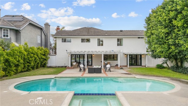 RARE!! Designer UPGRADES GALORE! This stunning home is located in the HIGHLY desirable community of Huntington Beach! This beautiful 5 bedroom + OVERSIZED bonus room, 3 bathroom, 3 car attached garage is what you've been looking for! Light and bright open floor plan offers custom improvements, such as the custom light fixtures, chefs kitchen, upgraded flooring throughout, recessed lighting, closet built-ins, soft close cabinets/drawers throughout, a new electrical panel and water heater (both installed in 2025), whole-house water filtration, and a brand-new pool heater and pump (2025), 220 EV outlet, the home is equipped with a comprehensive Vivint security system throughout, functioning HVAC system + MORE. The gorgeous oversized kitchen has been renovated with top of the line newer appliances, 42in Italian Range with 5 burner plus center griddle, 42inch prep sink, triple water filter system with water spigot. The nearly 9000 Sqft lot and is extremely private and beautifully landscaped, low maintenance backyard is perfect for entertaining with custom pool and spa. One large bedroom downstairs which is perfect for dual use space and full bathroom with shower downstairs. Head upstairs to the generous primary bedroom/suite and enjoy the picture windows, elevated ceilings, custom designer bathroom and built-ins walk in closet. In addition to the primary suite, three more bedrooms upstairs are spacious in size. One can be used as another living space, it opens to a beautiful deck in the front yard. The laundry room is on the first level with plenty of storage. This home strikes the perfect balance between an entertainer’s dream and a private retreat. This home is the definition of pristine quality throughout and truly a MUST SEE property, grab your tooth brush and move right in. Enjoy being within steps to Gibbs Park and Meadowlark Golf Course, 2 miles from the beach, less than a mile from the scenic wetlands walking trails, and perfectly positioned to take in spectacular 4th of July fireworks. This truly is a resort living right in your own neighborhood! All conveniently located near shopping, entertainment, fine dining restaurants, schools and more. Schedule your private showing today - this home won't last long!!