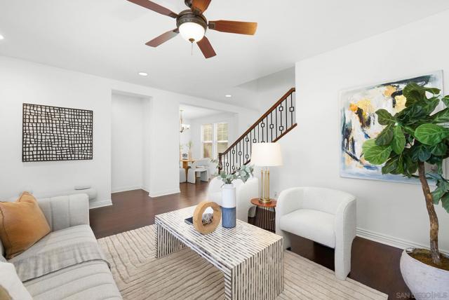 Spacious and thoughtfully designed, this 4-bedroom, 3-bathroom home offers 2,588 sq ft of comfortable living space in the desirable Manzanita Trail neighborhood of Pacific Highlands Ranch. Warm-toned flooring and a cozy fireplace create an inviting atmosphere throughout the home. The kitchen features a breakfast bar and a dining area, ideal for casual meals or entertaining. The primary suite includes a walk-in closet, private dressing area, and ensuite with dual vanities, a soaking tub, and separate shower. Generously sized secondary bedrooms provide plenty of space for family, guests, or home office. Outside, enjoy a backyard with a patio, porch, and a dedicated BBQ area, perfect for gatherings or relaxing in the California sun. Additional highlights include a second-floor laundry room, and a 2-car garage equipped with an electric vehicle charger. Air conditioning and furnace were also replaced in 2024. Conveniently located close to Solana Ranch Park and Solana Ranch Elementary School, this home makes it easy to enjoy parks, shopping, and everything the community has to offer. Spacious and thoughtfully designed, this 4-bedroom, 3-bathroom home offers 2,588 sq ft of comfortable living space in the desirable Manzanita Trail neighborhood of Pacific Highlands Ranch. Warm-toned flooring and a cozy fireplace create an inviting atmosphere throughout the home. The kitchen features a breakfast bar and a dining area, ideal for casual meals or entertaining. The primary suite includes a walk-in closet, private dressing area, and ensuite with dual vanities, a soaking tub, and separate shower. Generously sized secondary bedrooms provide plenty of space for family, guests, or home office. Outside, enjoy a backyard with a patio, porch, and a dedicated BBQ area, perfect for gatherings or relaxing in the California sun. Additional highlights include a second-floor laundry room, and a 2-car garage equipped with an electric vehicle charger. Air conditioning and furnace were also replaced in 2024. Conveniently located close to Solana Ranch Park and Solana Ranch Elementary School, this home makes it easy to enjoy parks, shopping, and everything the community has to offer.