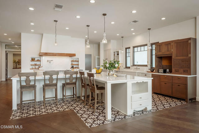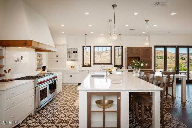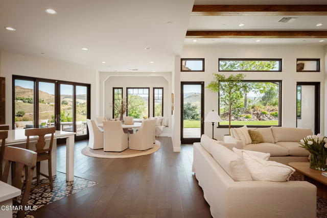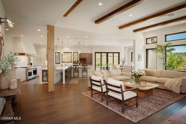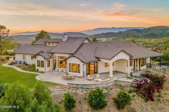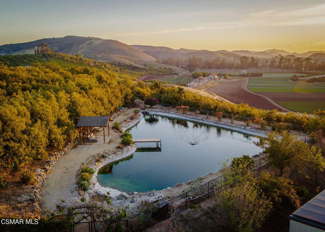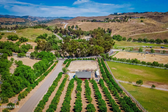 Lapeyre Ranch, an incredible opportunity in Moorpark... and this one is truly something special. Set across 10 acres of rolling, usable land, 15645 Lapeyre Road offers a rare and compelling blend of modern farmhouse living, income producing agriculture and fully realized equestrian amenities; all framed by sweeping views and endless open sky.Privately positioned at the top of the property, the newly refreshed 4,937 square foot residence captures breathtaking panoramic vistas from nearly every angle. Designed in a warm, modern farmhouse aesthetic, the home features expansive open concept living spaces, wide plank wood floors and beautiful exposed beams that create both volume and intimacy. The heart of the home is a stunning chef's kitchen, complete with a large center island, custom cabinetry, statement range and sunlit breakfast area. All seamlessly connected to the main living and dining spaces for effortless entertaining.Walls of windows and doors open to an inviting outdoor setting, where a built in BBQ, firepit lounge, and multiple seating areas overlook the surrounding orchards, barn and distant hills; creating the ultimate indoor/outdoor lifestyle.With 8 bedrooms and 3.5 baths, the home offers incredible flexibility for extended family, guests or a live/work dynamic.Beyond the residence, the property unfolds into a truly special ranch environment. Approximately 1,600 flourishing avocado trees and 425 Tango tangerine trees provide meaningful income potential, while the equestrian facilities are both functional and thoughtfully designed. A classic red barn with oversized stalls and corrals sits alongside a large riding arena, ideal for recreational riding. In addition, a substantial 40' x 60' detached shop/garage provides exceptional space for equipment, vehicles, storage, or all of your ranch needs--an incredibly valuable and versatile addition to the property.A private swimming pond with dock adds a rare and tranquil element, offering a peaceful retreat and a true connection to the land. Gently sloping acreage, mature landscaping and wide open space create a setting that feels both expansive and serene.This is a privately gated property where lifestyle, land and opportunity come together seamlessly. Whether you're seeking a working ranch, an equestrian retreat or a private estate with income producing potential....15645 Lapeyre Road is more than a home... it's a destination.