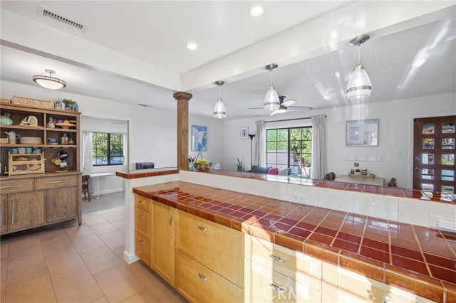 The kitchen offers both functionality and character, highlighted by custom cabinetry and distinctive design details that make it stand out. Throughout the home, newly installed tile flooring provides a seamless blend of contemporary style and durability, while upgrades such as new interior doors and copper plumbing add to the home’s overall quality and appeal. A custom front entry door enhances the curb appeal and creates a welcoming first impression.
