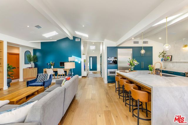 Step into this meticulously remodeled home in Valley Village showcasing luxury, sophistication, and timeless character. Spanning 3BD/3.5BA plus a fully permitted ADU, every finish has been thoughtfully curated from rich Zia tile featured in each ensuite bath to integrated smart home features throughout. Upon entry, warm engineered wood floors, high ceilings, and striking accent walls create an inviting first impression. The stunning chef's kitchen is outfitted with a huge center island, Thermador appliances, a built-in Miele coffee system, dolomite countertops, and a sleek backsplash crafted from handcrafted Cle tile. The living room has custom built-ins and expansive Western sliding doors open to the backyard, creating the perfect indoor-outdoor lifestyle. A stylish powder room just off the kitchen is ideal for guests. Down the hall, the primary suite features soaring ceilings, a walk-in closet, and a luxurious ensuite bath complete with a spacious shower with bench, dual vanity, durable slate tile flooring, and private water closet. Each secondary bedroom offers sliding closet space and its own ensuite bath featuring custom carpentry vanities. Outside, the backyard is designed for year-round entertaining with a heated and filtered pool, a large private lawn, covered patio, and multiple lounge areas. The fully detached ADU includes a kitchenette with stainless steel appliances, waterproof LVP flooring, and a well-appointed bathroom with a step-in shower, ideal for guests, extended family, or rental income. Additionally behind the ADU you'll find a bonus room that's perfect for a home office, gym, or storage room. The home also includes a laundry room with side-by-side washer and dryer, surround sound both indoors and outdoors, a four-camera hardwired security system, and value-enhancing and money-saving solar energy system. Conveniently located near the award-winning Colfax Charter Elementary school, Valley Village Park, and some of the valley's best dining and shopping, this reimagined home offers elevated living with exceptional convenience.