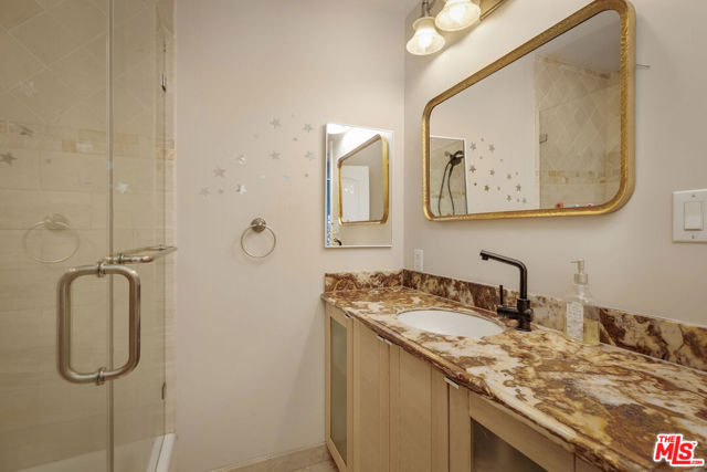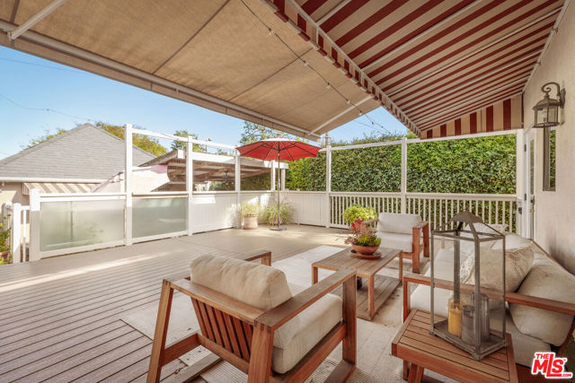 Location, Location, Location. This single-level residence features 4 bedrooms and 3.5 bathrooms across approximately 1,697 sqft, plus a detached ~280 sqft ADU with its own entrance: ideal for rental income, guests, or a private office. The main living spaces are open and inviting, with a well-designed kitchen flowing into the dining and living areas, anchored by a fireplace and large windows that bring in natural light. The layout is both functional and comfortable, with one bedroom positioned off the main living area, which could be used as a bedroom, formal dining room or office; and three additional bedrooms set privately down the hall. Two bedrooms include en suite baths, while the primary suite offers a walk-in closet, a spacious bathroom, and direct access to an enclosed bonus space: perfect for a home office or gym. Just beyond, a beautifully updated deck creates a peaceful outdoor setting with ample shade, ideal for relaxing or entertaining. The backyard connects seamlessly to the detached ADU and a gated rear parking area. Surrounded by mature hedging, the property feels quiet and secluded, with a front yard that functions as an additional outdoor space: perfect for dining, lounging, or play. Moments from Beverly Hills' top dining, shopping, and places of worship, this home combines location, privacy, and flexibility in one of the city's most desirable neighborhoods.
