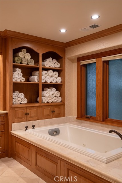The residence has been extensively renovated and upgraded throughout. Custom cabinetry, handmade doors, and one-of-a-kind custom woodwork crafted on-site reflect a level of care and craftsmanship rarely seen. Fireplaces feature hand-painted tile by Nancy Grace, complemented by hand-carved mantels that anchor each living space.