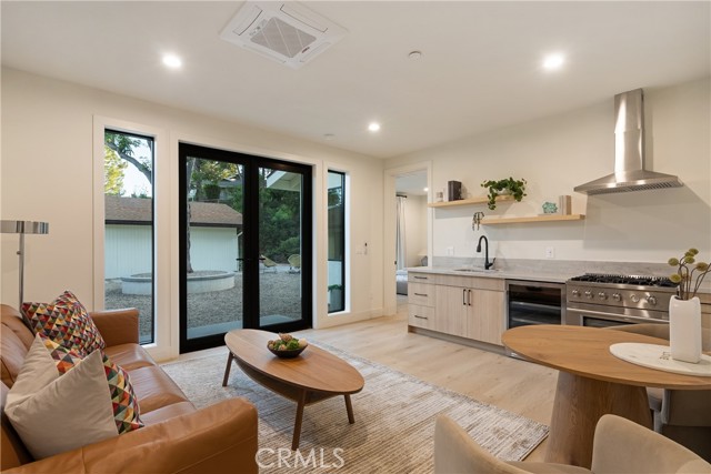 Set within the prestigious Cowan Heights enclave of North Tustin, this single-level estate offers a rare blend of modern design, privacy, and sweeping Peters Canyon views, all complemented by seamless indoor-outdoor living. The 2,112 square foot main residence features 3 en-suite bedrooms, 3.5 bathrooms, and a dedicated office with tranquil patio and canyon views—ideal for working or creating in a peaceful setting. Vaulted ceilings, expansive windows, and sliding glass doors bring in abundant natural light, enhancing the open-concept layout. The fully remodeled kitchen anchors the living space, complete with high-end finishes and thoughtful design that balances functionality with a clean, modern aesthetic. A newly constructed 803 square foot ADU provides exceptional flexibility, offering 2 bedrooms, 2 bathrooms, vaulted ceilings, and a spacious living area—perfect for extended family, guests, or additional living options. Set on nearly three-quarters of an acre, the outdoor spaces are a true highlight. A welcoming courtyard and expansive backyard open to unobstructed canyon views, creating an ideal setting for entertaining, dining, or quiet relaxation. Direct access to nearby hiking trails further enhances the lifestyle, blending convenience with nature. Recent upgrades to electrical and plumbing systems add peace of mind, ensuring the home is as functional as it is refined. A rare offering in one of North Tustin’s most desirable neighborhoods, this property delivers a unique combination of space, versatility, and a true sense of retreat.
