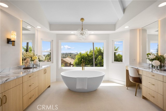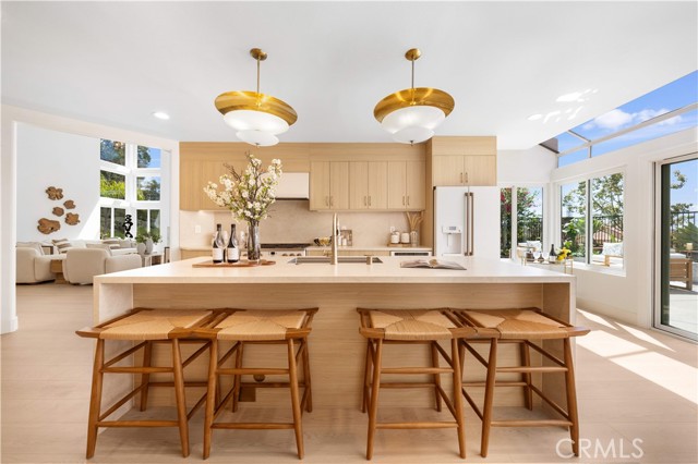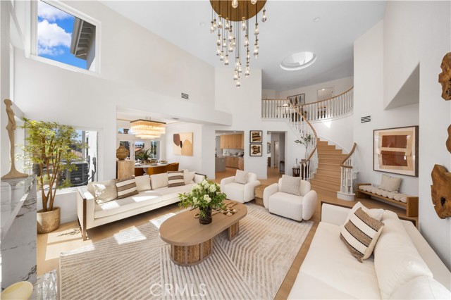 Located within the guard-gated Canyon Crest community, this designer residence blends LA design sensibility with the OC lifestyle, thoughtfully reimagined with approx $700K in permitted renovations. The home presents a cohesive design language where warm wood tones, curated stone, statement lighting, and clean architectural lines come together to create a calm, elevated living environment. Light, flow, and proportion are carefully considered, giving the home a sense of openness, balance, and quiet sophistication. Offering 5 beds and 4.5 baths, the layout is both functional and flexible, featuring a desirable main-level suite and an expansive upstairs bonus room ideal for a media room, lounge, gym, or multi-purpose use. Upon entry, soaring ceilings and large windows bring in abundant natural light, anchored by a designer fireplace, statement chandelier, skylight, and architectural staircase, creating a central space that feels both open and inviting. The dining area connects seamlessly to the backyard, supporting effortless indoor-outdoor living and entertaining. The kitchen serves as the heart of the home with a waterfall island, light-filled breakfast area, premium GE Café appliances, and custom cabinetry, complemented by a new washer and dryer, curated designer lighting, and optional furniture for a true move-in ready experience. Upstairs, the primary suite offers a private balcony, spacious walk-in closet, and a spa-style bath with dual vanities, soaking tub, walk-in shower, and a large picture window capturing sweeping views while maintaining privacy. The backyard features a pool, spa, and open outdoor space set against panoramic views, creating an ideal setting for entertaining, sunset gatherings, or quiet evenings, along with a 3-car garage for added functionality. Residents enjoy access to amenities including pools, tennis courts, fitness center, playgrounds, BBQ areas, and a clubhouse, with optional Lake Mission Viejo membership offering boating, swimming, fishing, and seasonal concerts. The home is served by strong public schools and nearby top private schools. Mission Viejo has also been selected as a pre-Games training site for multiple international teams ahead of the 2028 LA Olympics, supported by world-class facilities and the legacy of Nadadores, further elevating the city’s profile and reinforcing long-term value. This is where design, lifestyle and investment align—Opportunities like this don’t repeat, schedule your private showing today!