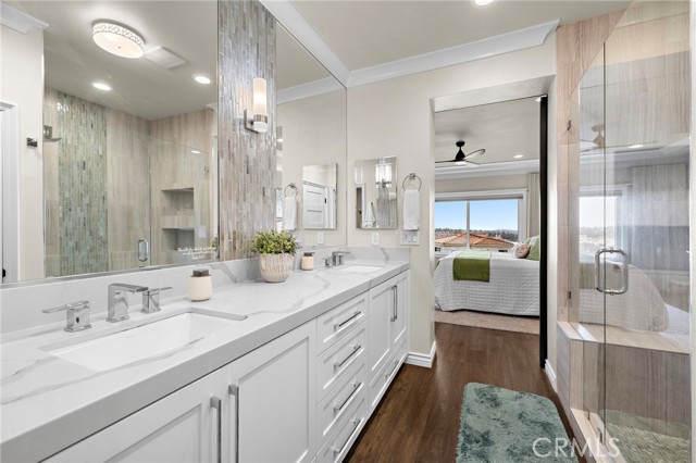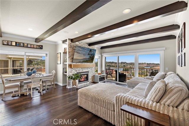 A GEM! An absolute STAR.....in every single sense of the word! The perfect location in the coveted Mallorca Condos, where you have privacy and quiet! A fabulous floor plan where you walk straight in - No stairs to deal with! A GORGEOUS view of the lake and the home itself is...... completely perfect with a totally exquisite remodel. Bright, cheery and such a happy home! All new kitchen with a giant Great Room, and no walls to distract or steal that view. Stone fireplace, wood style floors, kitchen with stunning counters, cabinets, tile, moldings, - window treatments..... and more. The baths, laundry &main level even the stair finishes are incredible. The two car garage has direct entrance off the entry & laundry room and the main level primary bedroom will absolutely thrill you - AGAIN - NO STAIRS! In this peaceful light filled bedroom, the view is AMAZING, plus a beautiful built-in wall unit and - the bathroom and gigantic walk in closet will blow your mind! Every detail is finished and perfect. Lots of upgrades you might not even notice at first glance like newer heat and air, with dual zone controls, tankless water heater, water softener, new windows and slider, new front door, automated landscape lighting, stone pavers, crown moldings throughout, retractable awnings, automated drapery, surround sound and custom lighting, epoxy flooring in the garage, large closet in the laundry room and more! Downstairs you have two wonderful bedrooms, the remodeled bathroom and - there is SO MUCH STORAGE IN THIS HOUSE and lots of storage units in the garage as well!!!!! This is a private gate guarded community with so much to offer! Plus - a short walk to the restaurants etc. at the Market On The Lake. You can just imagine yourselves, fishing or leisurely boating around the lake at sunset or with your guests on a party boat! There is SO MUCH TO DO!!!!! This home is rare as there are very few that have lake views from the front patio as well as the back balcony.