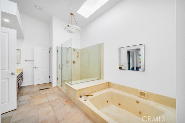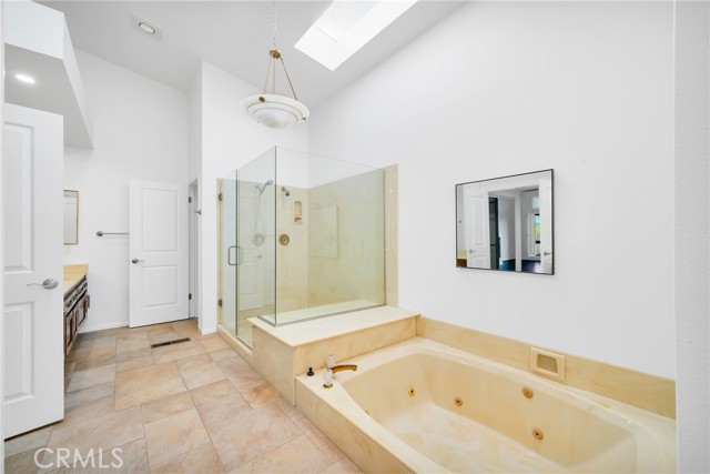 Soaring ceilings and multiple skylights pour natural light into every corner, while three fireplaces-in the living room, family room, and primary suite give the home a warmth that makes it just as comfortable on a quiet evening as it is when you're hosting a crowd and a conveniently located powder room serves the main living areas with ease.