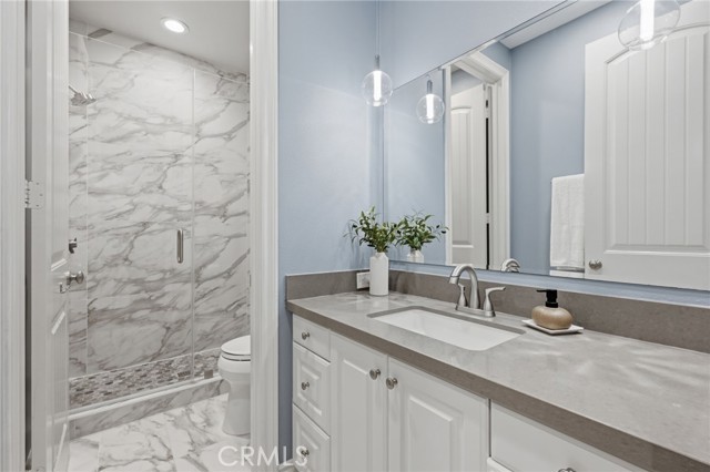 Experience the ultimate coastal lifestyle in this stunning end-unit townhouse, perfectly situated within the prestigious gated community of Pacific Shores, just moments from the iconic Huntington Beach coastline. Built in 2012, this meticulously crafted residence blends modern elegance with timeless design, offering a harmonious balance of comfort and sophistication. Step inside to discover an open-concept layout with natural light, soaring ceilings, and refined upgrades that exude quality at every turn. From the recessed lighting and crown molding to the plantation shutters and neutral tile floors, every detail has been thoughtfully curated. The beautifully updated chef’s kitchen—features gleaming quartz countertops, stylish backsplash, a generous island, and top-of-the-line stainless steel appliances, including a Bosch five-burner gas range. Flowing seamlessly into the dining area and family room, the space is perfect for both intimate evenings and lively gatherings, complete with a cozy gas fireplace and custom built-ins. Upstairs, the primary suite shines with a Juliet balcony, custom walk-in closet, and spa-like en-suite bath with dual sinks and a large walk-in shower. Two additional bedrooms, a beautifully remodeled hall bath, and a convenient upstairs laundry room provide plenty of space and functionality.