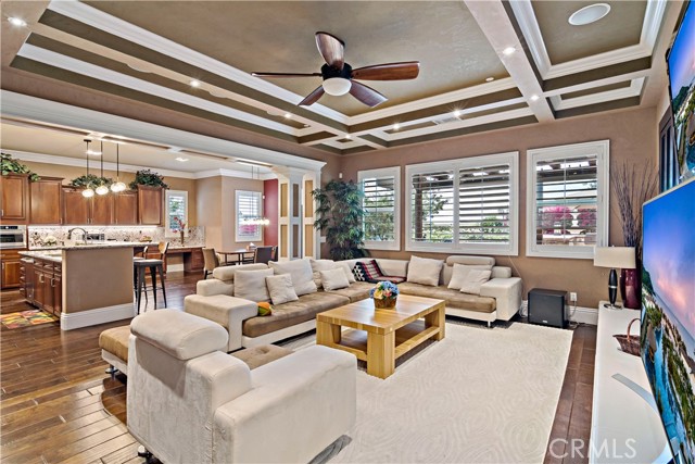 The main residence features 4–5 bedrooms, 4 bathrooms, soaring 10-foot ceilings, high-end wood flooring, plantation shutters, and abundant natural light throughout. The spacious layout includes a great room, formal living room, and dining room, along with a luxurious primary suite complete with a sitting area, spa-like bath, and expansive walk-in closet.