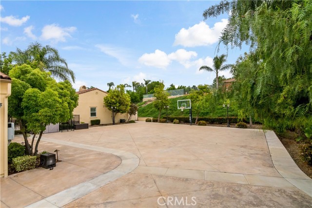 Resort-style outdoor amenities include a pool and spa, built-in BBQ island, firepit, mature landscaping, artificial turf areas, and an oversized driveway with a basketball court—perfect for entertaining and everyday enjoyment.