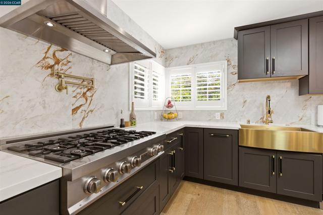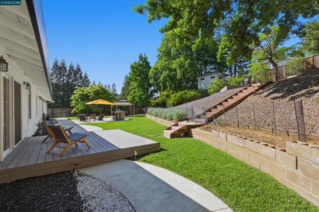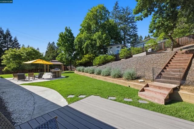 Experience elevated California living in this stunningly remodeled 4-bedroom, 3-bath home, ideally situated in prestigious Reliez Valley and located within Lafayette’s highly sought-after, top-rated school district. Thoughtfully redesigned in 2022 with exceptional attention to detail, this home showcases refined craftsmanship, high-end finishes, and a seamless blend of modern elegance and everyday comfort. The heart of the home features a bright and expansive open-concept floor plan, where living, dining, and kitchen spaces flow effortlessly together—perfectly suited for both large-scale entertaining and relaxed daily living. Abundant natural light, designer lighting, and quality materials create a warm yet sophisticated atmosphere throughout. Set on an impressive and private .3-acre corner lot, the outdoor living spaces are truly a standout feature. Enjoy a beautifully landscaped setting complete with a generous grassy play area, ideal for recreation or gatherings, along with a covered dining gazebo designed for year-round entertaining. A built-in BBQ and spacious patio provide the perfect backdrop for entertaining & dining, while a unique elevated viewing platform offers sweeping views of Reliez Valley—an ideal spot to unwind and take in the natural surroundings. The home’s thoughtfully designed layout offers both flexibility and privacy. The guest bedroom with an adjacent full bath is perfect for visitors, extended family, or a home office. The luxurious primary suite serves as a private retreat, featuring direct access to the backyard, a spa-inspired bathroom with upscale finishes, and an oversized walk-in closet. Additional bedrooms are generously sized and beautifully appointed with recessed lighting and designer touches, including one with its own en-suite bath for added convenience. Perfectly positioned for both tranquility and accessibility, this home is just moments from scenic hiking and biking trails, offering a connection to nature right outside your door. Its prime location also provides easy access to nearby Walnut Creek for shopping, dining, and entertainment, while maintaining the peaceful charm of Reliez Valley living. Combining sophisticated design, exceptional outdoor amenities, and an unbeatable location within one of Lafayette’s most desirable communities, this home represents a rare opportunity to enjoy luxury, comfort, and lifestyle in perfect harmony. Views: Ridge