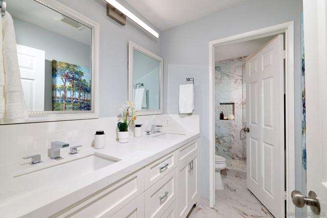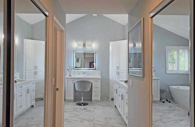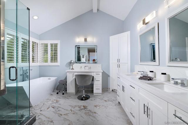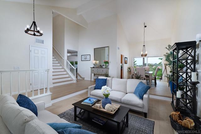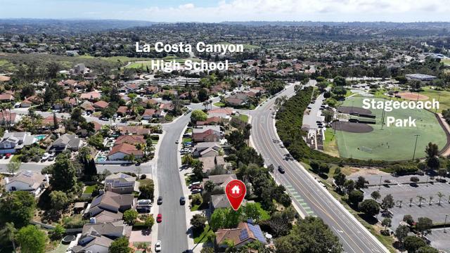 This home delivers the La Costa Tri-Factor: premier location, stylish modern upgrades, and exceptional schools. Set on an elevated lot with beautiful westerly views, this refreshed La Costa Knolls property features brand-new luxury vinyl plank flooring, fresh paint, vaulted ceilings, Milgard windows with plantation shutters, and a newer dual-zone HVAC system. The central kitchen opens to the main living areas for easy entertaining. The spacious primary suite offers two walk-in closets and a custom-tiled bath with a free-standing tub and separate shower; the connected 4th bedroom is perfect for an office, nursery, or retreat. Enjoy sunsets from the covered patio or stroll to Stagecoach Park. Minutes to La Costa Canyon High School. The location is truly exceptional. Nestled near scenic trails and open space, this home is ideal for outdoor and fitness enthusiasts. You’ll enjoy convenient access to North County’s best dining, shopping, fitness studios, and entertainment, plus world-class golf, the Del Mar Racetrack, and miles of coastline just 5 miles away. Quick access to the I-5 makes commuting and weekend adventures effortless. Practical features elevate everyday living, including a 3-car garage, dedicated laundry room, and a wet bar perfect for entertaining. Energy-efficient solar panels help keep utility costs low. Best of all, there are no HOA fees or Mello-Roos, giving you freedom and long-term value. This home blends comfort, convenience, and the quintessential North County lifestyle.