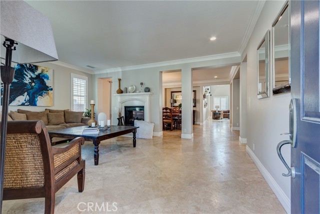 The thoughtfully designed first floor includes a private bedroom with an en-suite bathroom, ideal for guests or extended family, along with a convenient powder room. Upon entry, you’re greeted by an elegant foyer that opens to a formal sitting room with a fireplace and a separate formal dining room.