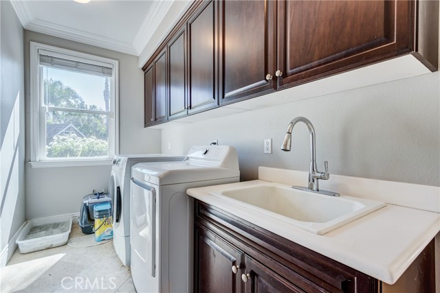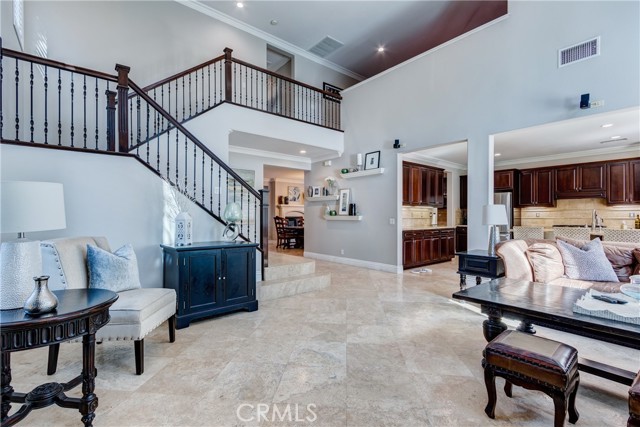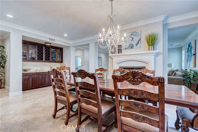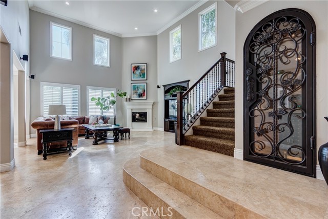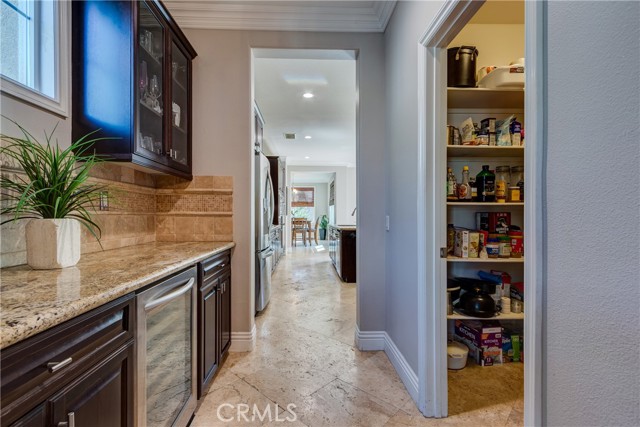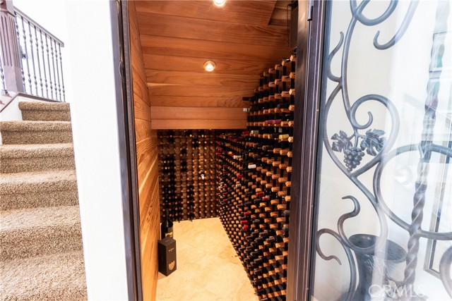A standout feature is the beautifully designed wine cellar tucked beneath the staircase, complete with an ornate door that adds a touch of sophistication. The home also offers a dry bar, a separate butler’s prep area, and a spacious walk-in pantry—perfect for hosting and entertaining.