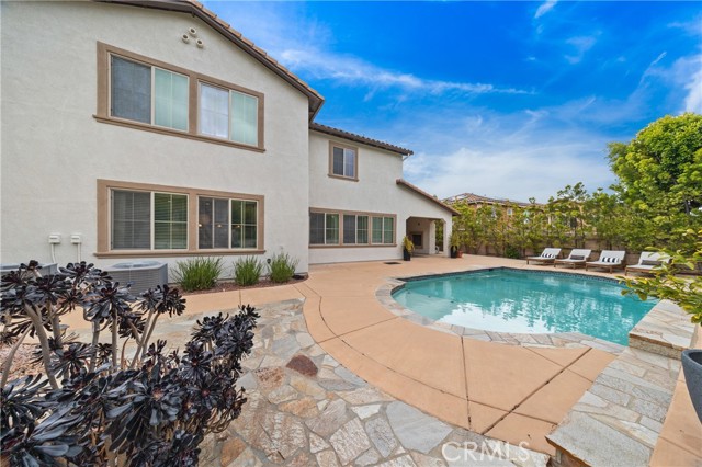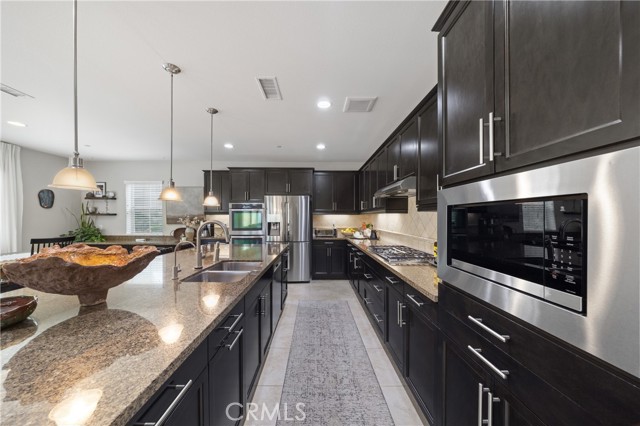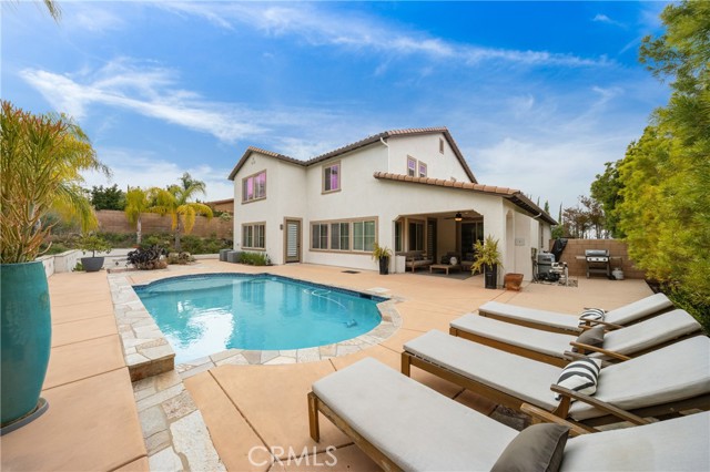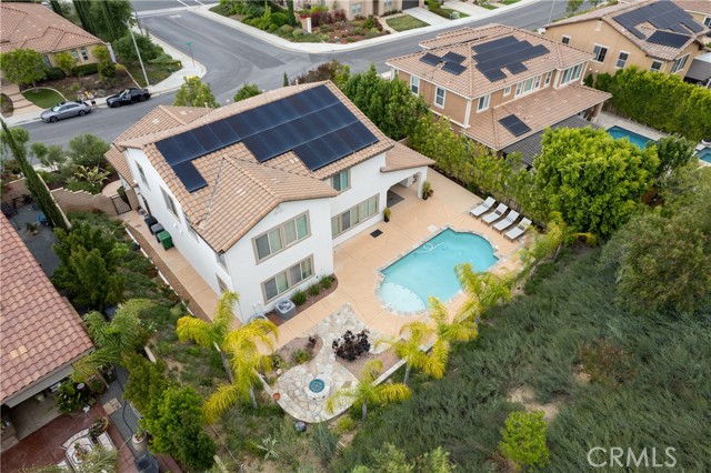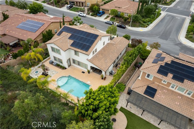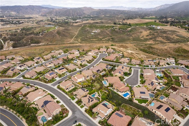 Welcome to your dream home—where luxury, comfort, and style come together in perfect harmony! This stunning 5-bedroom, 3.5-bath executive residence in the highly sought-after Morgan Hill community boasts a gourmet kitchen with a massive island, double ovens, and an open-concept design that flows seamlessly into the spacious family room—perfect for both everyday living and unforgettable entertaining—plus a fully owned 9.6kW solar energy system for enhanced efficiency and long-term savings. From the moment you arrive, the inviting porch and vibrant, drought-tolerant landscaping set the tone for the elegance found within. Step inside to a bright, airy entryway showcasing meticulous attention to detail, leading to a formal dining room adorned with a breathtaking mural. The thoughtfully designed layout includes a downstairs bedroom with a private bath—ideal for guests or multigenerational living—plus an additional downstairs room perfect for an office, gym, or den with direct access to the California Room. Natural light fills every corner of this home, highlighting the expansive living spaces and oversized laundry room with ample storage. Retreat to the luxurious primary suite featuring a spa-inspired bathroom with dual vanities, a soaking tub, separate shower, and generous his-and-hers closets. Upstairs, you’ll find two additional spacious bedrooms and a versatile loft with a large closet. Step outside to your private backyard oasis—complete with a California Room featuring a cozy gas fireplace and ceiling fan, a sparkling pool, propane fire pit, and beautifully designed low-maintenance landscaping. With a 3-car garage and abundant storage, this home truly checks every box. Enjoy resort-style living with access to the Morgan Hill clubhouse, pool, spa, tennis courts, and more—all just minutes from Old Town Temecula, renowned wineries, Pechanga Casino, and top-rated schools. This home has it all—come see it, fall in love, and make it yours before it’s gone!