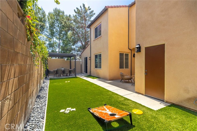 Outside, two distinct entertaining areas invite you to savor the Southern California lifestyle. Whether you're enjoying a morning coffee on the private patio, playing on the low-maintenance artificial turf, or picking fresh citrus from your own backyard tree, this outdoor haven is designed for ultimate enjoyment.
