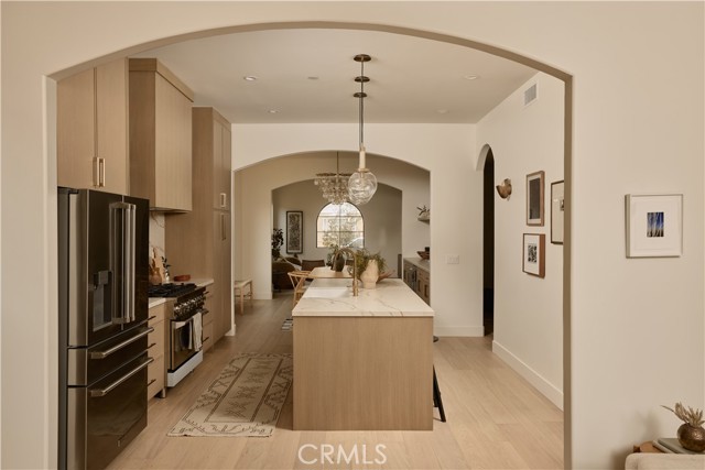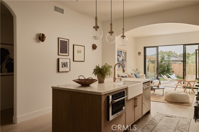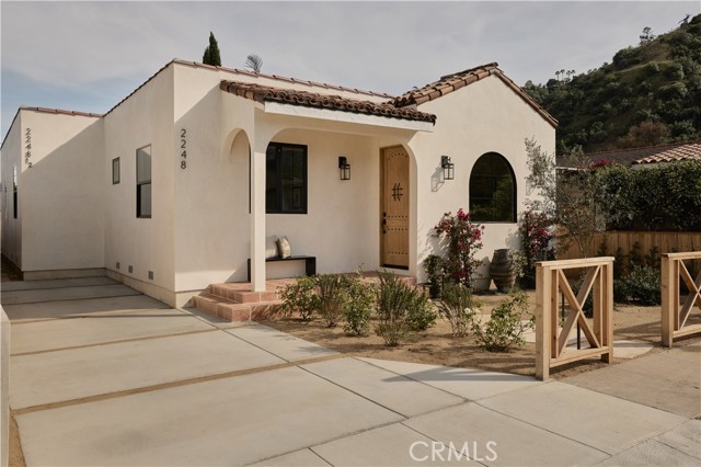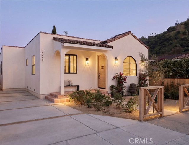 Tucked into the heart of Frogtown, 2248 Glover Place is a beautifully executed Spanish-style residence that lives like brand-new construction, complete with a detached studio ADU, offering the ideal blend of flexibility, lifestyle, and income potential. The main home features 3 bedrooms and 3 bathrooms, thoughtfully designed with soaring 10-foot ceilings throughout, creating an open, airy feel from the moment you step inside. A welcoming sitting area flows seamlessly into a defined dining space, leading to a stunning chef’s kitchen anchored by a large island—perfect for both everyday living and entertaining. The expansive great room at the rear of the home opens directly to the backyard, creating a true indoor-outdoor experience that defines Southern California living. All three bedrooms are generously sized, including one with its own en-suite bathroom—ideal for guests or a home office setup. The primary suite is a true retreat, featuring impressive scale, a walk-in closet, and a spa-like bathroom complete with a freestanding soaking tub, walk-in shower, and dual vanity. Out back, the property continues to impress with a private, well-sized yard and a detached studio ADU equipped with a full kitchenette and bathroom, perfect for guests, rental income, or a creative workspace. A dedicated laundry area adds convenience and functionality. Situated on a walkable street just moments from the LA River bike path, local coffee shops, restaurants, and some of Frogtown’s most popular hotspots, this home offers the perfect blend of design, usability, and location, an exceptional opportunity in one of Northeast LA’s most vibrant neighborhoods.