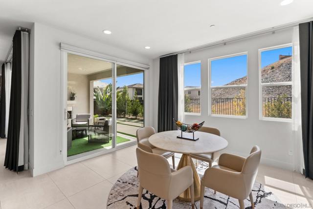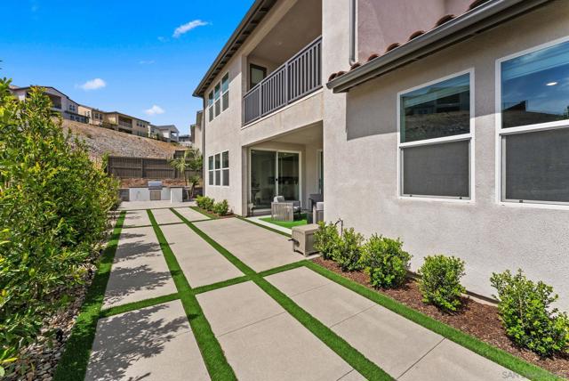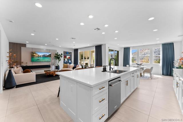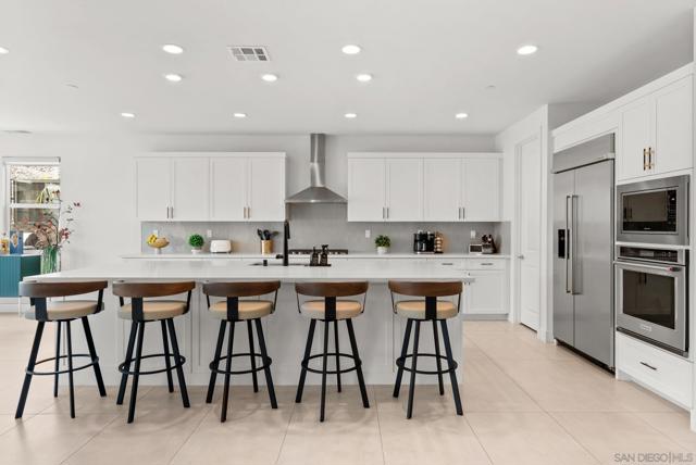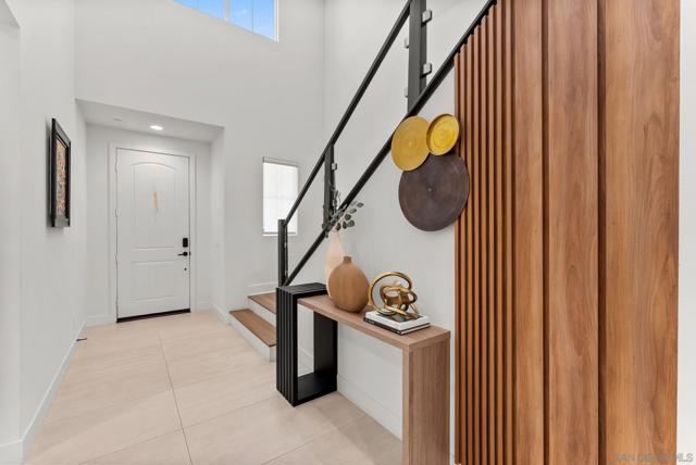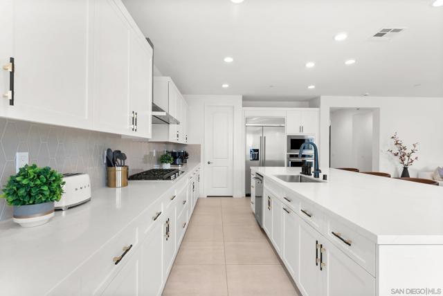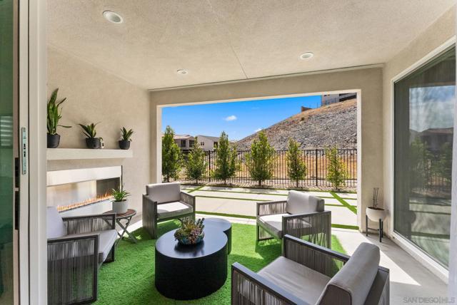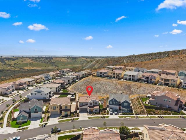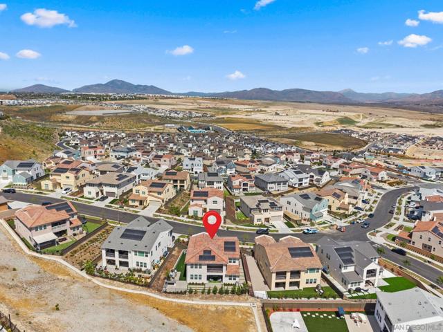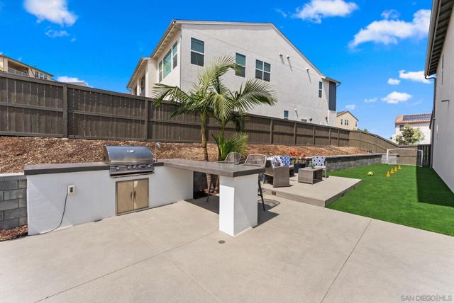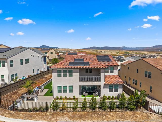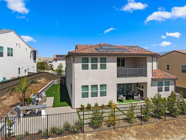 Welcome to this beautifully upgraded 5-bedroom, 4.5-bath home in Otay Ranch’s Cota Vera community within the desirable Savona neighborhood. Built in 2024 and offering approx. 3,445 sq. ft., this home combines modern comfort, flexible living space, and thoughtful upgrades for everyday life. The open floor plan centers around a spacious kitchen with an oversized island, built-in KitchenAid refrigerator, smart faucet, and ample storage, flowing into the dining and family room for easy gathering. Large sliding doors open to a covered California room with fireplace, perfect for relaxing, hosting, or enjoying indoor-outdoor living year-round. A highly desirable feature is the downstairs bedroom with its own full bath and closet, ideal for guests, multigenerational living, or added privacy. Also on the main level, the bonus room with custom built-in bookshelf offers flexible space for a home office, TV room, playroom, or optional bedroom. Upstairs, the versatile loft with built-in workspace and entertainment center provides more room for work, study, or play, while the custom primary closet with island and added built-ins add style and function. The home is enhanced by a custom-designed foyer wall and console table, created for the space and included with the home. Outside, the redesigned front and back yards feature low-maintenance landscaping, turf, irrigation, lighting, and a custom BBQ island with built-in grill, offering space to play, entertain, and unwind. Owned solar and smart-home features complete this turnkey home.
