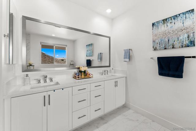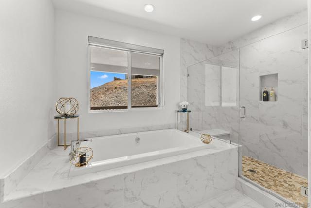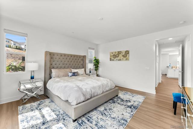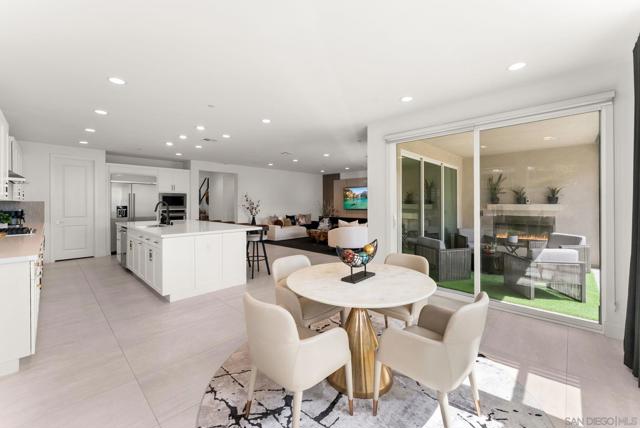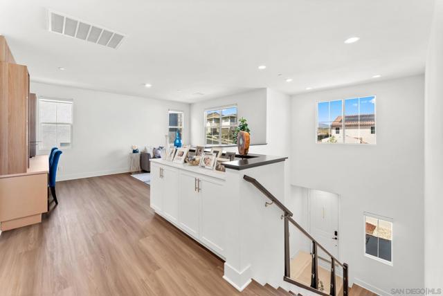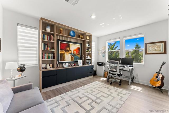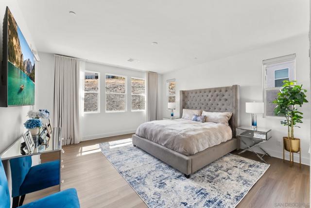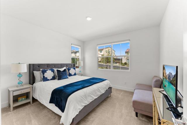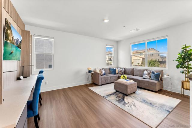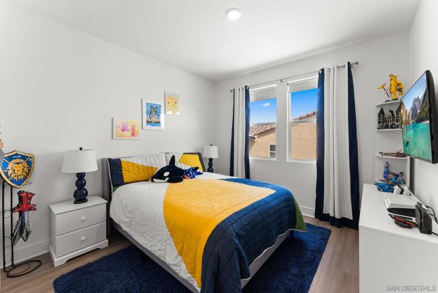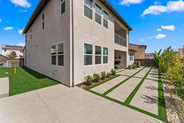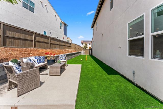 Welcome to this beautifully upgraded 5-bedroom, 4.5-bath home in Otay Ranch’s Cota Vera community within the desirable Savona neighborhood. Built in 2024 and offering approx. 3,445 sq. ft., this home combines modern comfort, flexible living space, and thoughtful upgrades for everyday life. The open floor plan centers around a spacious kitchen with an oversized island, built-in KitchenAid refrigerator, smart faucet, and ample storage, flowing into the dining and family room for easy gathering. Large sliding doors open to a covered California room with fireplace, perfect for relaxing, hosting, or enjoying indoor-outdoor living year-round. A highly desirable feature is the downstairs bedroom with its own full bath and closet, ideal for guests, multigenerational living, or added privacy. Also on the main level, the bonus room with custom built-in bookshelf offers flexible space for a home office, TV room, playroom, or optional bedroom. Upstairs, the versatile loft with built-in workspace and entertainment center provides more room for work, study, or play, while the custom primary closet with island and added built-ins add style and function. The home is enhanced by a custom-designed foyer wall and console table, created for the space and included with the home. Outside, the redesigned front and back yards feature low-maintenance landscaping, turf, irrigation, lighting, and a custom BBQ island with built-in grill, offering space to play, entertain, and unwind. Owned solar and smart-home features complete this turnkey home.