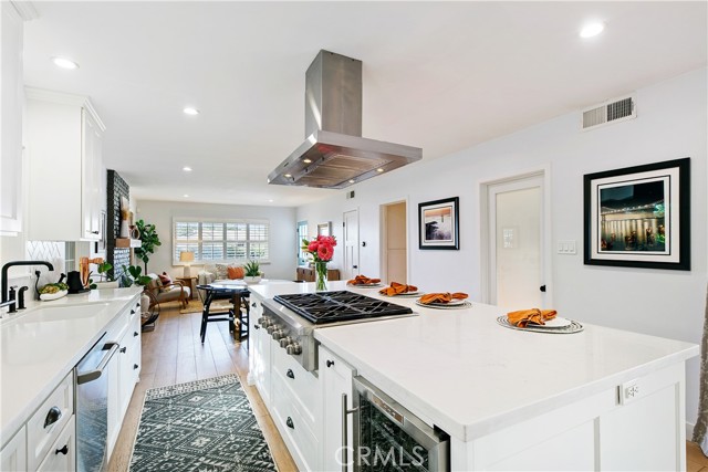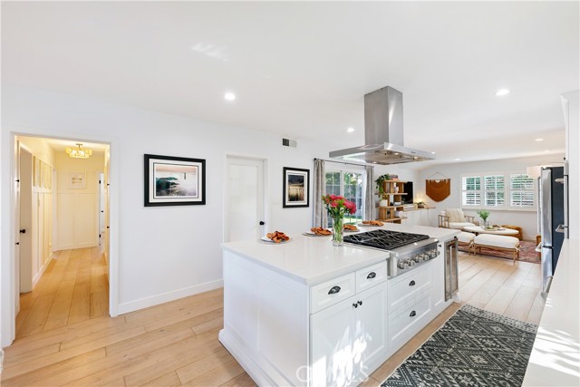 Some homes are built. This one was considered, every detail redesigned for the way people live: gathered together, cooking something amazing, with the afternoon coastal breeze drifting through an open kitchen window. Set in one of West Torrance’s most established neighborhoods, a place where families put down roots and stay, this fully renovated home strikes the rare balance between livability and elevated design. The kitchen is the heart of it all. Designed for the cook who doesn’t want to miss the conversation, it opens seamlessly to the living space and features a central island with seating for four, a full suite of stainless appliances, and stunning Della Terra New Carrara slab counters that bring the feel of a high-end culinary space home. Just off the kitchen, a dedicated laundry room keeps daily life tucked neatly out of sight, and bonus pantry storage means you’ll never run out of room for the things that matter. The living room is anchored by a full run of custom cabinetry that makes a space feel intentional rather than improvised. Wide plank hardwood floors carry you through to a separate front seating area beside the dining room, where a gas fireplace with reclaimed wood mantle is exactly where you want to be on a cool coastal evening with a good book. The main bathroom was renovated with a designer’s eye: hand-painted Zia cement tiles, a quartz countertop with deck-mount faucet, and Kohler fixtures throughout. The primary bedroom is generously sized with ample closet space and enough space to take time away to recharge. Outside, the front yard makes a statement. A beautiful olive tree anchors the space, while lush bay laurel hedges create a natural privacy screen from the street. Two raised planter beds are ready for an herb garden or a full kitchen garden. Out back, brand new low-maintenance turf, pet-friendly, with drainage, gives you a clean, versatile space for entertaining or play. A blackberry bush and rose garden line the side yard. The infrastructure matches the aesthetic: tankless water heater, copper and PEX plumbing, automatic sprinklers, 240V garage outlet for your EV, and pre-wired and plumbed for A/C when you want it. One mile to Redondo Beach. Minutes to everything. Ready for whatever comes next.