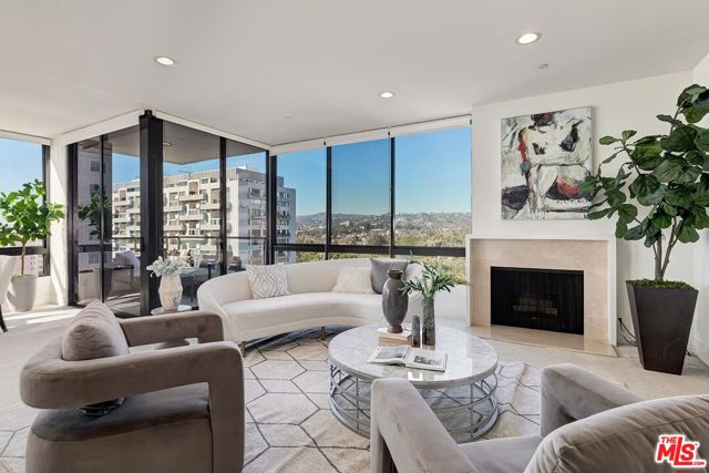 Perched high above Los Angeles, with sweeping panoramic vistas, this exceptional corner residence offers a rare sense of calm above the city. Located in The Diplomat along the coveted Wilshire Corridor, the home strikes a refined balance between privacy, scale, and uninterrupted outlooks. Expansive walls of glass frame a striking backdrop of skyline and mountains, evolving from soft morning light to dramatic evening glow. The interiors unfold with effortless flow, designed for both elevated entertaining and everyday ease. A warm, fireplace-centered living area anchors the home, offering an inviting yet sophisticated focal point. A generous covered terrace extends the experience outdoors perfect for sunrise coffee, sunset gatherings, or quiet moments above it all. The primary suite is thoughtfully positioned as a private retreat, while the secondary bedroom offers flexibility as a guest suite, office, or intimate lounge. Life at The Diplomat is defined by full-service comfort, with amenities including a resort-style pool and spa, saunas, fitness center, and curated common areas. With 24-hour valet and concierge services, and HOA coverage that includes earthquake insurance, water, cable, and internet, the residence delivers a seamless, lock-and-leave lifestyle.