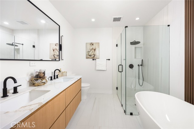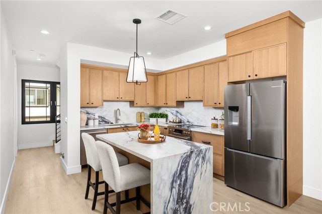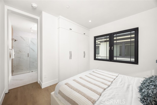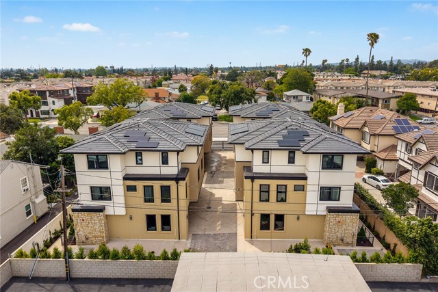 Stunning brand-new 8-unit luxury complex with modern design in the highly desirable Arcadia, located within the award-winning Arcadia Unified School District and developed by Rodeo Development. Conveniently situated near Westfield Santa Anita, Santa Anita Park, the Los Angeles County Arboretum and Botanic Garden, Santa Anita Golf Course, and USC Arcadia Hospital, with easy access to Interstate 210. This property features a 4-unit duplex-style building, with each residence shares only one wall and has three sides exposed to natural light, providing excellent brightness and cross-ventilation. Each unit offers approximately 1,660 sq. ft. of living space with 3 bedrooms and 3 bathrooms. The open and functional floor plan showcases European-style windows, luxury vinyl plank floors, and designer finishes throughout. The second level features a spacious great room, dining area, and a gourmet kitchen equipped with quartz countertops, Bosch appliances, and custom cabinetry, seamlessly connected for both everyday living and entertaining. One en-suite bedroom is also conveniently located on this level. The third level is dedicated to the primary suite, complete with a designer bathroom, along with an additional well-appointed en-suite bedroom.This all-electric home features a heat pump A/C system, electric water heater, stove, washer, and dryer (no gas service). Each unit includes a fully paid 6-panel solar system, a private outdoor space, and a dedicated laundry area. The attached 2-car garage is equipped with a Level 2 EV charger for each unit. Located near Hugo Reid Elementary School and Foothill Middle School, this property is just minutes from shopping, dining, parks, and popular markets including H Mart and 99 Ranch Market.