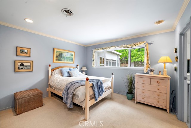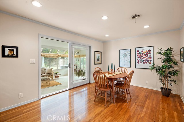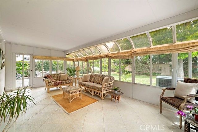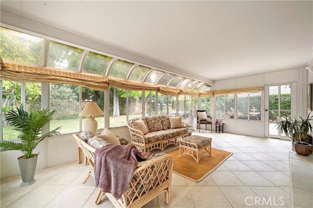 Absolutely charming and beautifully upgraded, this meticulously maintained single-story home is nestled in a quiet interior location within the highly sought-after Stardust tract, just steps to the neighborhood park and located in a top-ranked school zone. Boasting 3 bedrooms, 2 bathrooms, and a stunning garden-view sunroom, this home offers both comfort and timeless appeal. Gorgeous curb appeal welcomes you with a lush lawn, mature shade tree, rose garden, fragrant jasmine gracefully growing over the garage door, and a slate walkway leading to a custom front door with three panels of leaded glass and an operable sidelight for refreshing cross breezes. Step inside to discover rich hardwood flooring, French dual pane windows, crown molding, recessed lighting, raised panel doors, central A/C, solar, a whole house water filtration system, Tex-Cote exterior paint for lasting durability, and a tankless water heater. The elegant formal living room showcases a granite fireplace with handcrafted wood surround and mantel, creating a warm and inviting setting. The spacious family room and dining area flow seamlessly into the upgraded kitchen featuring granite countertops, breakfast bar, deep stainless sink, reverse osmosis water system, a convenient inset spice and oil nook, and an abundance of solid wood cabinetry with hand-blown glass display panels. Just off the kitchen is a convenient inside laundry room with additional pantry storage. A true highlight of the home is the solarium-style sunroom with tile flooring and walls of glass that frame lush backyard views, perfectly blending indoor and outdoor living and creating a serene retreat for relaxation or entertaining. The tranquil backyard features two flagstone-accented patios, soothing fountains, lawn, mature trees, and a variety of fruit trees and garden herbs including Anna’s apple, guava, orange, and cherimoya, along with African blue basil, bay laurel, spearmint, epazote, and vibrant bougainvillea—an ideal private oasis. Both bathrooms have been tastefully remodeled with tile flooring, custom vanities, and designer tile surrounds; the hall bath offers a tub/shower combo with multiple shower heads and linen storage, while the primary ensuite features a walk-in shower with frameless glass enclosure. This move-in ready home offers a rare combination of elegance, comfort, and peaceful living in one of the area’s most desirable neighborhoods—truly a place to call home.