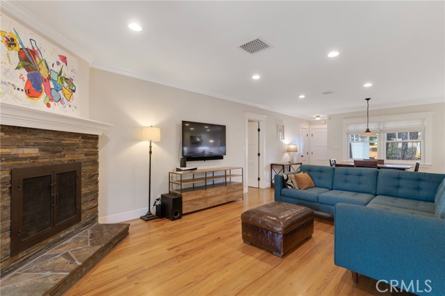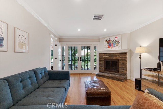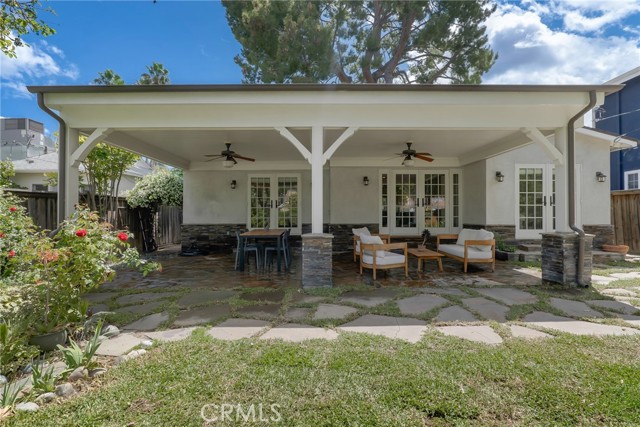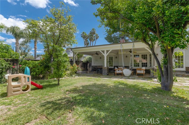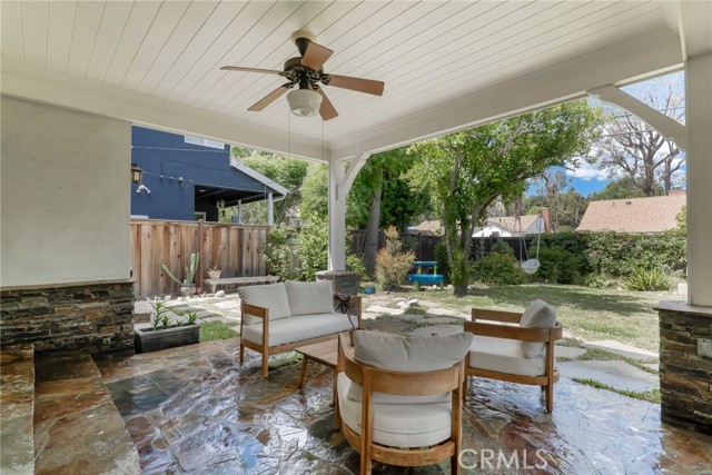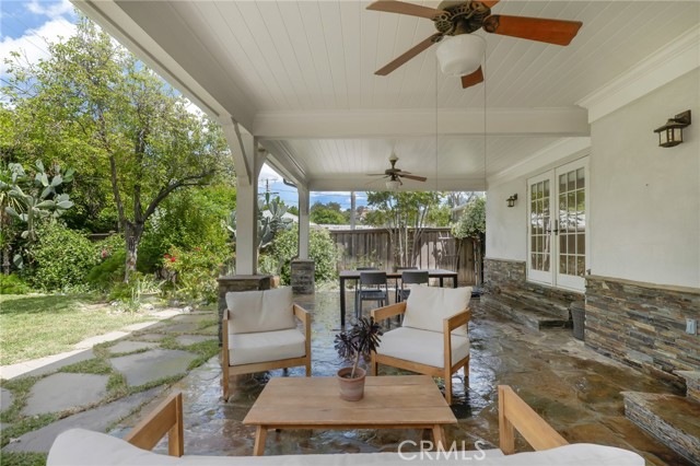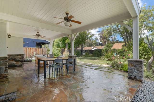 Step outside to a relaxing backyard retreat. A sprawling covered patio with beautifully detailed wood ceilings and posts, and a flagstone floor creates an expansive outdoor living space ideal for relaxing or hosting gatherings. The lush garden features a grassy area, shade and fruit trees, stone and rock pathways, and a tranquil fountain. Additional highlights include a two-car-attached garage with direct access. This prime location is a short distance to local shops and restaurants, Starbuck’s, Woodland Hills Elementary, Warner Center, the Village & Topanga Mall, all with convenient freeway access.