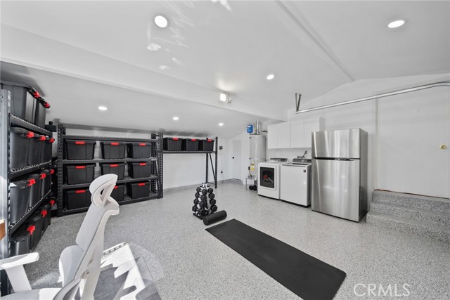 The home offers three well-sized bedrooms, including a peaceful primary suite with lovely views of the pool and lush greenery, a beautifully updated bath, and a walk-in closet. And just when you think you’ve seen it all, the finished garage offers a phenomenal flex space with a mini-split climate control system, large double-pane window, special enamel floor coating, and attractive storage racks to keep everything organized. Whether used as a gym, office, creative studio, or bonus hangout space, it adds incredible versatility to the home.