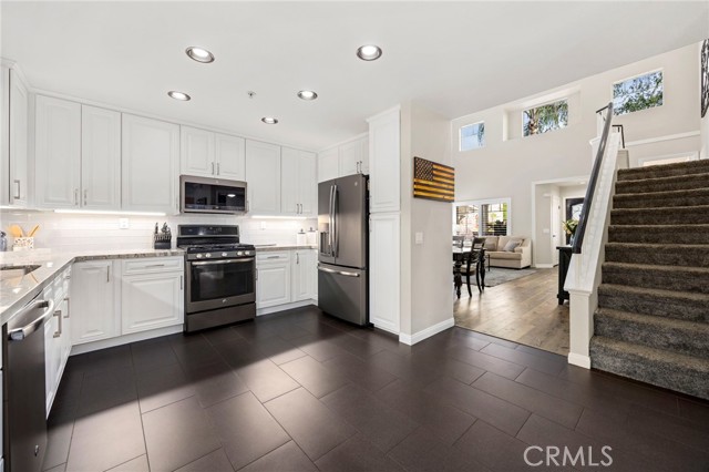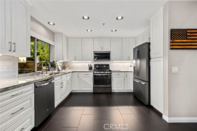 At the heart of the home lies a beautifully remodeled kitchen—featuring custom white cabinetry, granite countertops, farmhouse sink perfectly positioned beneath a window overlooking the backyard oasis, and a layout that opens effortlessly into the breakfast nook and inviting family room anchored by a stone fireplace and enhanced with surround sound and views from every window.